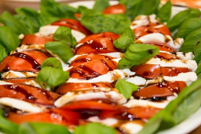 Keywords: food red vegetables tomatoes mozzarella basil healthy frisch