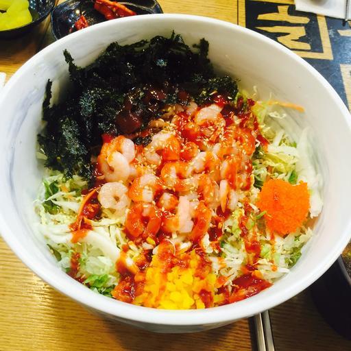 Keywords: food shrimp bowl shrimp hoedeopbap rice japanese delicious vegetable