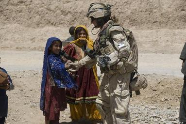 | Keywords: Foot patrol in Panjwayi district DVIDS495858.jpg en Master Cpl Anouk Beauvais of the Kandahar Provincial Reconstruction Team gives hand shakes to Afghan girls during a foot patrol in Panjwayi district Afghanistan The goal of the patrol was to see the needs and living condition of the local population The KPRT consists of Canadian forces members a civilian police contingent led by the RCMP Correctional Services Canada representatives of the Department of Foreign Affairs and International Trade and the Canadian International Development Agency The KPRT conducts coordinated interdepartmental operations to promote good governance assists the Government of Afghanistan in extending its authority in the province of Kandahar and facilitates the development of a stable secure and self-sustaining environment for the people of Afghanistan Joint Task Force Afghanistan is Canada's military contribution to Afghanistan Canadian operations will focus on working with Afghan authorities to improve security governance and economic development in the country The Canadian Forces contribution in Afghanistan comprises over 2 500 soldiers most of whom serve with JTF-Afg at Kandahar Airfield and Camp Nathan Smith Canada's Provincial Reconstruction Team in Kandahar City Additional personnel are assigned to various military headquarters support bases and civilian organizations 2008-04-30 Photo by Cpl Simon Duchesne KPRT Photographer https //www dvidshub net/image/495858 080430-D-+++++-002 2011-12-07 17 24 PANJWAYI AF PD-USGov Kandahar International Airport Kandahar Province Camp Nathan Smith Girls of Afghanistan Images from DoD uploaded by Fæ |