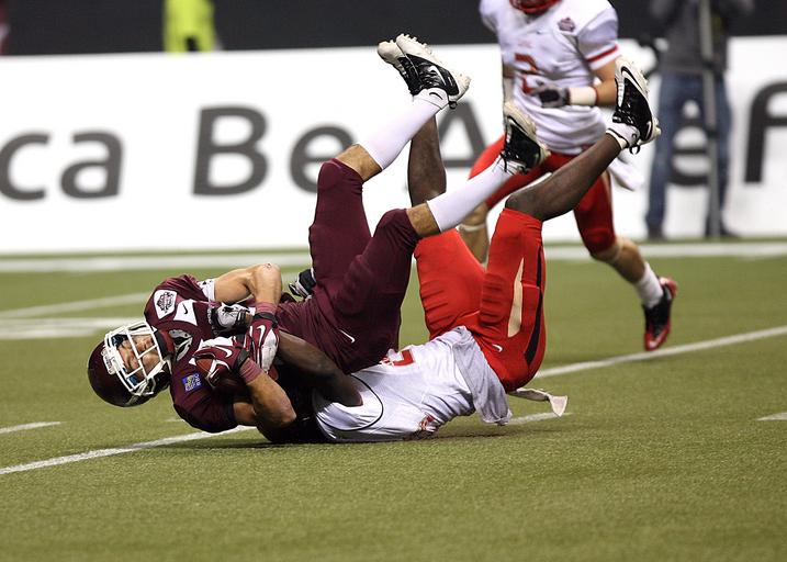 Keywords: football action tackle ball carrier reception ball field sport player activity playing competition football team game football game active championship canadian university vanier cup competitors