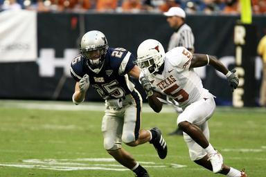 Keywords: football american football game texas competition competitors sport ball play pigskin running receiver defensive back defender pursuit action motion athlete outdoors male playing competitive field football field referee texan