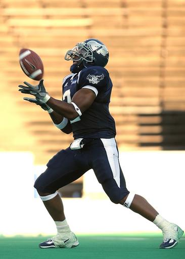 Keywords: football american football player sport ball game play pigskin competition helmet athlete american football field kick return fielding a kick return catch college university football field athletic action action photo field green texas