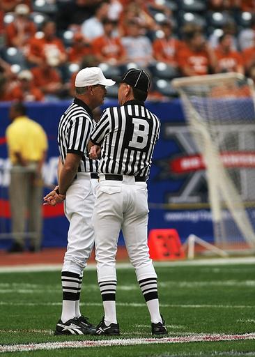 Keywords: football officials referees american football game field judge sport competition uniform stripes grass person stadium male championship discussion back judge football stadium