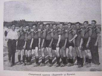 | Keywords: Football team. Buchach, 1930's.jpg uk Ук аїнська футбольна команда Бу евій Бучач 2013-10-26 08 28 39 Бучач і Бучаччина Істо ично-мемуа ний збі ник - ю Йо к Лондон Па иж Сидней То онто ТШ Ук аїнський а хів 1972 944 с ; іл с 283 author PD-Art Uploaded with UploadWizard Historical images of Buchach Buchach in the 1930s |