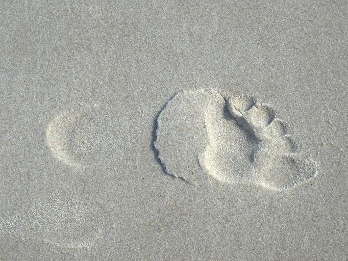 Keywords: footprint sand beach footprints traces tracks in the sand sand beach sole feet summer bank dune foot reprint barefoot