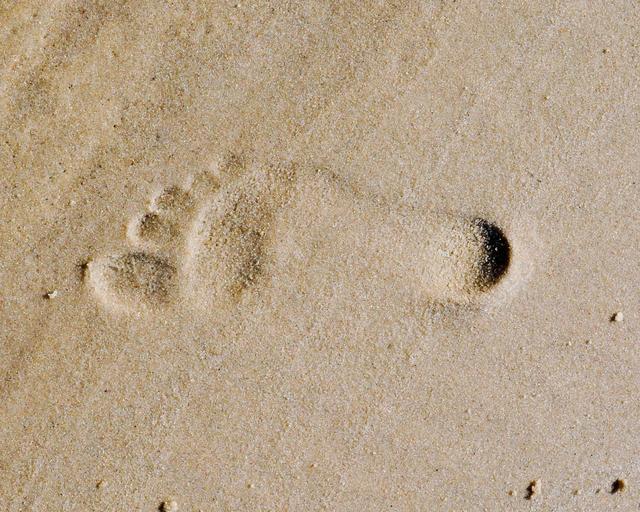 Keywords: footprint sandy beaches brown coastal lands grounds prints human feet foot marks shore walking people single one alone outdoors sunny bright