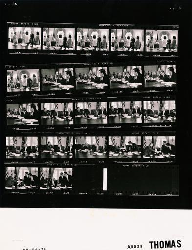 Keywords: Ford A0529 NLGRF photo contact sheet (1974-09-04)(Gerald Ford Library).jpg White House Photographic Office WHPO is housed at the Gerald R Ford Presidential Library a branch of the National Archives and Records Administration NARA <br/><br/> This file is a 200 dpi photo contact sheet having images from roll of film A0529 of the August 9 1974 - January 20 1977 Gerald R Ford White House Photographic Office Series A0001-A9999 and B0001-B2886 photographs <br/><br/> The date on the photo contact sheet is the date the roll of film was processed not necessarily the date the photographs were taken See table below for additional details 1974-09-04 Gerald R Ford Presidential Library Image http //www fordlibrarymuseum gov/library/whphotos/A0529_NLGRF jpg A0529_NLGRF jpg from http //www fordlibrarymuseum gov/library/whphotos/19740904whpo pdf White House Photographs September 4 1974 of the http //www fordlibrarymuseum gov/Library/whphotos/whpo asp White House Photographic Collection page White House Photographic Office WHPO - Thomas PD-USGov Institution Institution Gerald R Ford Presidential Library Table wikitable sortable + Photo contact sheet A0529 U S President Ford Administration Gerald R Ford Library Frame s Tone Subject proper Subject generic Names Geographic Location Photographer Date - 6A BW Meeting with Women Appointees standing talking near table GRF Betty Ford Others Cabinet Room Thomas 1974-09-04 - 7A-11A BW Meeting with Women Appointees standing talking near table GRF Betty Ford Others Cabinet Room Thomas 1974-09-04 - 12A-16A BW GRF with Hispanic American Members of Congress seated at table camera right Cabinet Room Thomas 1974-09-04 - 17A BW GRF with Hispanic American Members of Congress seated at table GRF reaching for pen Cabinet Room Thomas 1974-09-04 - 18A-19A BW GRF with Hispanic American Members of Congress seated at table GRF signing document Cabinet Room Thomas 1974-09-04 - 20A-21A BW GRF with Hispanic American Members of Congress seated at table GRF shaking hand of man on right Cabinet Room Thomas 1974-09-04 - 22A-23A BW GRF with Hispanic American Members of Congress seated at table GRF shaking hand of man on left Cabinet Room Thomas 1974-09-04 - 24A-26A BW GRF with Hispanic American Members of Congress seated at table GRF shaking hands of the men Cabinet Room Thomas 1974-09-04 - 27A BW GRF with Hispanic American Members of Congress Roll A055 All negs given to Congm Lewis 10/9/74 GRF rising from chair Cabinet Room Thomas 1974-09-04 Gerald R Ford Presidential Library and Museum-cooperation PD-USGov Contact sheets by the Ford White House September 1974 |