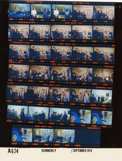 | Keywords: Ford A0624 NLGRF photo contact sheet (1974-09-07)(Gerald Ford Library).jpg White House Photographic Office WHPO is housed at the Gerald R Ford Presidential Library a branch of the National Archives and Records Administration NARA <br/><br/> This file is a 200 dpi photo contact sheet having images from roll of film A0624 of the August 9 1974 - January 20 1977 Gerald R Ford White House Photographic Office Series A0001-A9999 and B0001-B2886 photographs <br/><br/> The date on the photo contact sheet is the date the roll of film was processed not necessarily the date the photographs were taken See table below for additional details 1974-09-07 Gerald R Ford Presidential Library Image http //www fordlibrarymuseum gov/library/whphotos/A0624_NLGRF jpg A0624_NLGRF jpg from http //www fordlibrarymuseum gov/library/whphotos/19740907whpo pdf White House Photographs September 7 1974 of the http //www fordlibrarymuseum gov/Library/whphotos/whpo asp White House Photographic Collection page White House Photographic Office WHPO <br/> Creator David Hume Kennerly PD-USGov Institution Institution Gerald R Ford Presidential Library Table wikitable sortable + Photo contact sheet A0624 U S President Ford Administration Gerald R Ford Library Frame s Tone Subject proper Subject generic Names Geographic Location Photographer Date - 4-5 Color GRF seated at desk crew preparing room for filming session GRF film crew Oval Office Kennerly 1974-09-07 - 6 Color GRF seated at desk crew filming GRF film crew Oval Office Kennerly 1974-09-07 - 7-9 Color Soviet Ambassador to U S ; Soyuz crew standing handshaking GRF Ambassador Anatoly Dobrynin Soviet cosmonauts Cabinet Room Kennerly 1974-09-07 - 10-22 Color Soviet Ambassador to U S ; Apollo-Soyuz crews standing talking; looking at Apollo-Soyuz model GRF Ambassador Anatoly Dobrynin Soviet cosmonauts Thomas Stafford Donald Slayton Vance Brand Cabinet Room Kennerly 1974-09-07 - 23 Color Soviet Ambassador to U S ; Apollo-Soyuz crews standing talking; looking at Apollo-Soyuz model; long shot GRF Ambassador Anatoly Dobrynin Soviet cosmonauts Thomas Stafford Donald Slayton Vance Brand Media Cabinet Room Kennerly 1974-09-07 - 24-25 Color Soviet Ambassador to U S ; Apollo-Soyuz crews standing talking; looking at Apollo-Soyuz model; opposite angle GRF Ambassador Anatoly Dobrynin Soviet cosmonauts Thomas Stafford Donald Slayton Vance Brand Cabinet Room Kennerly 1974-09-07 - 26-27 Color Soviet Ambassador to U S ; Apollo-Soyuz crews standing talking; looking at Apollo-Soyuz model; opposite angle GRF Ambassador Anatoly Dobrynin Soviet cosmonauts Thomas Stafford Donald Slayton Vance Brand Cabinet Room Kennerly 1974-09-07 - 28-31 Color Soviet Ambassador to U S ; Apollo-Soyuz crews touring Oval Office -all not in every frame GRF Ambassador Anatoly Dobrynin Soviet cosmonauts Thomas Stafford Donald Slayton Vance Brand Anatole Forestenko Scowcroft Oval Office Kennerly 1974-09-07 - 32-34 Color Apollo-Soyuz crew posing in group - vertical GRF Anatoly Dobrynin Aleksey Leonov Valery Kubasov Vladamir Shatalov Thomas Stafford Donald Slayton Vance Brand Oval Office Kennerly 1974-09-07 - 35-36 Color Apollo-Soyuz crew posing in group - horizontal GRF Anatoly Dobrynin Aleksey Leonov Valery Kubasov Vladamir Shatalov Thomas Stafford Donald Slayton Vance Brand Oval Office Kennerly 1974-09-07 Gerald R Ford Presidential Library and Museum-cooperation PD-USGov Contact sheets by the Ford White House September 1974 Photographs by David Hume Kennerly from 1974 |