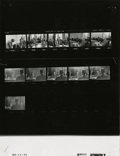 | Keywords: Ford A0683 NLGRF photo contact sheet (1974-09-11)(Gerald Ford Library).jpg White House Photographic Office WHPO is housed at the Gerald R Ford Presidential Library a branch of the National Archives and Records Administration NARA <br/><br/> This file is a 200 dpi photo contact sheet having images from roll of film A0683 of the August 9 1974 - January 20 1977 Gerald R Ford White House Photographic Office Series A0001-A9999 and B0001-B2886 photographs <br/><br/> The date on the photo contact sheet is the date the roll of film was processed not necessarily the date the photographs were taken See table below for additional details 1974-09-11 Gerald R Ford Presidential Library Image http //www fordlibrarymuseum gov/library/whphotos/A0683_NLGRF jpg A0683_NLGRF jpg from http //www fordlibrarymuseum gov/library/whphotos/19740911whpo pdf White House Photographs September 11 1974 of the http //www fordlibrarymuseum gov/Library/whphotos/whpo asp White House Photographic Collection page White House Photographic Office WHPO <br/> Creator David Hume Kennerly PD-USGov Institution Institution Gerald R Ford Presidential Library Table wikitable sortable + Photo contact sheet A0683 U S President Ford Administration Gerald R Ford Library Frame s Tone Subject proper Subject generic Names Geographic Location Photographer Date - 2A BW Buchen seated GRF and Hartmann leaning on desk Marsh in background GRF Buchen Marsh Hartmann Oval Office Kennerly 1974-09-11 - 3A-4A BW Meeting with Republican Congressional Leaders seated at table GRF Sen Scott PA Rep Rhodes Cabinet Room Kennerly 1974-09-11 - 5A-6A BW Meeting with Republican Congressional Leaders seated at table GRF Sens Cotton Scott PA Rep Rhodes Cabinet Room Kennerly 1974-09-11 - 7A-12A BW Labor Conference on Inflation GRF seated at table back to camera others across from GRF GRF Leonard Woodcock George Meany East Room Kennerly 1974-09-11 Gerald R Ford Presidential Library and Museum-cooperation PD-USGov Contact sheets by the Ford White House September 1974 Photographs by David Hume Kennerly from 1974 Conference on Inflation 1974 |