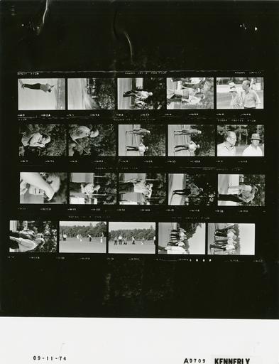 | Keywords: Ford A0709 NLGRF photo contact sheet (1974-09-11)(Gerald Ford Library).jpg White House Photographic Office WHPO is housed at the Gerald R Ford Presidential Library a branch of the National Archives and Records Administration NARA <br/><br/> This file is a 200 dpi photo contact sheet having images from roll of film A0709 of the August 9 1974 - January 20 1977 Gerald R Ford White House Photographic Office Series A0001-A9999 and B0001-B2886 photographs <br/><br/> The date on the photo contact sheet is the date the roll of film was processed not necessarily the date the photographs were taken See table below for additional details 1974-09-11 Gerald R Ford Presidential Library Image http //www fordlibrarymuseum gov/library/whphotos/A0709_NLGRF jpg A0709_NLGRF jpg from http //www fordlibrarymuseum gov/library/whphotos/19740911whpo pdf White House Photographs September 11 1974 of the http //www fordlibrarymuseum gov/Library/whphotos/whpo asp White House Photographic Collection page White House Photographic Office WHPO <br/> Creator David Hume Kennerly PD-USGov Institution Institution Gerald R Ford Presidential Library Table wikitable sortable + Photo contact sheet A0709 U S President Ford Administration Gerald R Ford Library Frame s Tone Subject proper Subject generic Names Geographic Location Photographer Date - 2A BW Trip to North Carolina; Playing Round of Golf; World Golf Hall of Fame Induction - Pinehurst North Carolina follow-through after drive; taken from behind GRF Pinehurst NC Pinehurst Country Club Kennerly 1974-09-11 - 3A BW Trip to North Carolina; Playing Round of Golf; World Golf Hall of Fame Induction - Pinehurst North Carolina blasting out of sand trap GRF Pinehurst NC Pinehurst Country Club Kennerly 1974-09-11 - 4A BW Trip to North Carolina; Playing Round of Golf; World Golf Hall of Fame Induction - Pinehurst North Carolina walking carrying golf club GRF Pinehurst NC Pinehurst Country Club Kennerly 1974-09-11 - 5A-6A BW Trip to North Carolina; Playing Round of Golf; World Golf Hall of Fame Induction - Pinehurst North Carolina walking GRF Patty Berg Pinehurst NC Pinehurst Country Club Kennerly 1974-09-11 - 7A BW Trip to North Carolina; Playing Round of Golf; World Golf Hall of Fame Induction - Pinehurst North Carolina rubbing nose GRF Pinehurst NC Pinehurst Country Club Kennerly 1974-09-11 - 8A BW Trip to North Carolina; Playing Round of Golf; World Golf Hall of Fame Induction - Pinehurst North Carolina watching flight of ball GRF Pinehurst NC Pinehurst Country Club Kennerly 1974-09-11 - 9A-10A BW watching; woman wearing WIN button Unidentified Man woman Pinehurst NC Pinehurst Country Club Kennerly 1974-09-11 - 11A BW Trip to North Carolina; Playing Round of Golf; World Golf Hall of Fame Induction - Pinehurst North Carolina head and shoulders; Snead wearing hat GRF Sam Snead Pinehurst NC Pinehurst Country Club Kennerly 1974-09-11 - 12A-14A BW Trip to North Carolina; Playing Round of Golf; World Golf Hall of Fame Induction - Pinehurst North Carolina watching flight of ball; hand over eyes like visor GRF Pinehurst NC Pinehurst Country Club Kennerly 1974-09-11 - 15A-16A BW Trip to North Carolina; Playing Round of Golf; World Golf Hall of Fame Induction - Pinehurst North Carolina assessing putt GRF Pinehurst NC Pinehurst Country Club Kennerly 1974-09-11 - 17A BW Trip to North Carolina; Playing Round of Golf; World Golf Hall of Fame Induction - Pinehurst North Carolina standing talking GRF Unidentified Man Pinehurst NC Pinehurst Country Club Kennerly 1974-09-11 - 18A-19A BW Trip to North Carolina; Playing Round of Golf; World Golf Hall of Fame Induction - Pinehurst North Carolina long shot of green GRF Others Pinehurst NC Pinehurst Country Club Kennerly 1974-09-11 - 20A-21A BW Trip to North Carolina; Playing Round of Golf; World Golf Hall of Fame Induction - Pinehurst North Carolina walking off green GRF Sam Snead Others Pinehurst NC Pinehurst Country Club Kennerly 1974-09-11 Gerald R Ford Presidential Library and Museum-cooperation PD-USGov Contact sheets by the Ford White House September 1974 Photographs by David Hume Kennerly from 1974 |