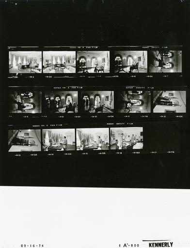 Keywords: Ford A0800 NLGRF photo contact sheet (1974-09-16)(Gerald Ford Library).jpg White House Photographic Office WHPO is housed at the Gerald R Ford Presidential Library a branch of the National Archives and Records Administration NARA <br/><br/> This file is a 200 dpi photo contact sheet having images from roll of film A0800 of the August 9 1974 - January 20 1977 Gerald R Ford White House Photographic Office Series A0001-A9999 and B0001-B2886 photographs <br/><br/> The date on the photo contact sheet is the date the roll of film was processed not necessarily the date the photographs were taken See table below for additional details 1974-09-16 Gerald R Ford Presidential Library Image http //www fordlibrarymuseum gov/library/whphotos/A0800_NLGRF jpg A0800_NLGRF jpg from http //www fordlibrarymuseum gov/library/whphotos/19740916whpo pdf White House Photographs September 16 1974 of the http //www fordlibrarymuseum gov/Library/whphotos/whpo asp White House Photographic Collection page White House Photographic Office WHPO <br/> Creator David Hume Kennerly PD-USGov Institution Institution Gerald R Ford Presidential Library Table wikitable sortable + Photo contact sheet A0800 U S President Ford Administration Gerald R Ford Library Frame s Tone Subject proper Subject generic Names Geographic Location Photographer Date - 3-4 BW Counsellor to the President seated around desk; GRF holding up document in 2nd frame; long shots GRF Hartmann Oval Office Kennerly 1974-09-16 - 5 BW Prior to Proclamation Announcing a Program for the Return of Vietnam Era Draft Evaders GRF entering room GRF Media Cabinet Room Kennerly 1974-09-16 - 6-10 BW Proclamation Announcing a Program for the Return of Vietnam Era Draft Evaders GRF seated reading GRF Media Cabinet Room Kennerly 1974-09-16 - 11 BW Following Proclamation Announcing a Program for the Return of Vietnam Era Draft Evaders GRF rising from chair GRF Media Cabinet Room Kennerly 1974-09-16 - 12-13 BW Following Proclamation Announcing a Program for the Return of Vietnam Era Draft Evaders leaving room GRF Cabinet Room Kennerly 1974-09-16 - 14-16 BW Assistant Press Secretary standing talking near desk GRF Hushen Oval Office Kennerly 1974-09-16 Gerald R Ford Presidential Library and Museum-cooperation PD-USGov Contact sheets by the Ford White House September 1974 Photographs by David Hume Kennerly from 1974 |