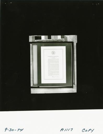 | Keywords: Ford A1117 NLGRF photo contact sheet (1974-09-30)(Gerald Ford Library).jpg White House Photographic Office WHPO is housed at the Gerald R Ford Presidential Library a branch of the National Archives and Records Administration NARA <br/><br/> This file is a 200 dpi photo contact sheet having images from roll of film A1117 of the August 9 1974 - January 20 1977 Gerald R Ford White House Photographic Office Series A0001-A9999 and B0001-B2886 photographs <br/><br/> The date on the photo contact sheet is the date the roll of film was processed not necessarily the date the photographs were taken See table below for additional details 1974-09-30 Gerald R Ford Presidential Library Image http //www fordlibrarymuseum gov/library/whphotos/A1117_NLGRF jpg A1117_NLGRF jpg from http //www fordlibrarymuseum gov/library/whphotos/19740930whpo pdf White House Photographs September 30 1974 of the http //www fordlibrarymuseum gov/Library/whphotos/whpo asp White House Photographic Collection page White House Photographic Office WHPO - Copy PD-USGov Institution Institution Gerald R Ford Presidential Library Table wikitable sortable + Photo contact sheet A1117 U S President Ford Administration Gerald R Ford Library Frame s Tone Subject proper Subject generic Names Geographic Location Photographer Date - 1 BW Ceremonial Document Granting Pardon to Richard Nixon Copy 1974-09-30 Gerald R Ford Presidential Library and Museum-cooperation PD-USGov Contact sheets by the Ford White House September 1974 |