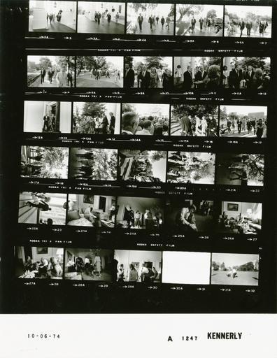 | Keywords: Ford A1247 NLGRF photo contact sheet (1974-10-06)(Gerald Ford Library).jpg White House Photographic Office WHPO is housed at the Gerald R Ford Presidential Library a branch of the National Archives and Records Administration NARA <br/><br/> This file is a 200 dpi photo contact sheet having images from roll of film A1247 of the August 9 1974 - January 20 1977 Gerald R Ford White House Photographic Office Series A0001-A9999 and B0001-B2886 photographs <br/><br/> The date on the photo contact sheet is the date the roll of film was processed not necessarily the date the photographs were taken See table below for additional details 1974-10-06 Gerald R Ford Presidential Library Image http //www fordlibrarymuseum gov/library/whphotos/A1247_NLGRF jpg A1247_NLGRF jpg from http //www fordlibrarymuseum gov/library/whphotos/19741006whpo pdf White House Photographs October 6 1974 of the http //www fordlibrarymuseum gov/Library/whphotos/whpo asp White House Photographic Collection page White House Photographic Office WHPO <br/> Creator David Hume Kennerly PD-USGov Institution Institution Gerald R Ford Presidential Library Table wikitable sortable + Photo contact sheet A1247 U S President Ford Administration Gerald R Ford Library Frame s Tone Subject proper Subject generic Names Geographic Location Photographer Date - 2A-3A BW Going to Sunday Services at St John's Episcopal Church walking GRF Susan Ford Janet Ford Secret Service North Portico Kennerly 1974-10-06 - 4A-5A BW Going to Sunday Services at St John's Episcopal Church walking GRF Susan Ford Janet Ford Secret Service Media North Driveway Kennerly 1974-10-06 - 6A-9A BW Going to Sunday Services at St John's Episcopal Church walking; moving toward camera GRF Susan Ford Janet Ford Secret Service Media Washington DC Lafayette Park Kennerly 1974-10-06 - 10A-11A BW Prior to Sunday Services walking GRF Susan Ford Janet Ford Secret Service Media Washington DC Outside St John's Episcopal Church - Lafayette Square Kennerly 1974-10-06 - 12A BW Departure from Sunday Services at St John's Episcopal Church walking out door GRF Susan Ford Janet Ford Washington DC Outside St John's Episcopal Church - Lafayette Square Kennerly 1974-10-06 - 13A-15A BW Following Sunday Services at St John's Episcopal Church greeting handshaking GRF Susan Ford Janet Ford Parishioners Washington DC Outside St John's Episcopal Church - Lafayette Square Kennerly 1974-10-06 - 16A-20A BW Returning to White House from St John's Episcopal Church walking GRF Susan Ford Janet Ford Secret Service Media Washington DC Lafayette Park Kennerly 1974-10-06 - 21A BW Returning to White House from St John's Episcopal Church walking GRF Susan Ford Janet Ford Secret Service Media North Driveway Kennerly 1974-10-06 - 22A BW Returning to White House from St John's Episcopal Church walking up steps GRF Susan Ford Janet Ford North Portico Kennerly 1974-10-06 - 23A BW Pet Golden Retriever seated petting dog Susan Ford Liberty Second Floor - West Sitting Room Kennerly 1974-10-06 - 24A BW daughter-in-law of GRF; wife of Michael Ford standing; GRF kissing Gayle Ford GRF Janet Ford Michael Ford Gayle Ford Second Floor - West Sitting Room Kennerly 1974-10-06 - 25A BW Pet Golden Retriever Mike kneeling petting dog Michael Ford Liberty Second Floor - West Sitting Room Kennerly 1974-10-06 - 27A BW daughter-in-law of GRF; wife of Michael Ford - Pet Golden Retriever seated; GRF petting dog GRF Gayle Ford Susan Ford Liberty Second Floor - West Sitting Room Kennerly 1974-10-06 - 28A BW sister-in-law of GRF - Pet Golden Retriever walking toward Center Hall GRF Janet Ford Susan Ford Liberty Second Floor - West Sitting Room Kennerly 1974-10-06 - 29A BW sister-in-law of GRF standing talking GRF Janet Ford Susan Ford Michael Ford Others Second Floor - West Sitting Room Kennerly 1974-10-06 - 30A BW Kennerly 1974-10-06 - 31A BW Photo Opportunity with Pet Golden Retriever posing on lawn with dog - White House and OEOB in background GRF Susan Ford Liberty South Lawn Kennerly 1974-10-06 - 26A BW daughter-in-law of GRF; wife of Michael Ford - Pet Golden Retriever seated; GRF petting dog GRF Gayle Ford Liberty Second Floor - West Sitting Room Kennerly 1974-10-06 Gerald R Ford Presidential Library and Museum-cooperation PD-USGov Contact sheets by the Ford White House October 1974 Photographs by David Hume Kennerly from 1974 |