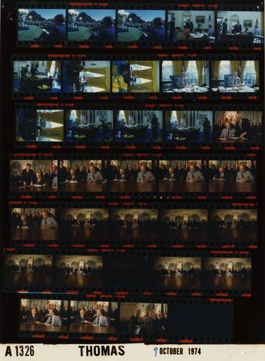 Keywords: Ford A1326 NLGRF photo contact sheet (1974-10-09)(Gerald Ford Library).jpg White House Photographic Office WHPO is housed at the Gerald R Ford Presidential Library a branch of the National Archives and Records Administration NARA <br/><br/> This file is a 200 dpi photo contact sheet having images from roll of film A1326 of the August 9 1974 - January 20 1977 Gerald R Ford White House Photographic Office Series A0001-A9999 and B0001-B2886 photographs <br/><br/> The date on the photo contact sheet is the date the roll of film was processed not necessarily the date the photographs were taken See table below for additional details 1974-10-09 Gerald R Ford Presidential Library Image http //www fordlibrarymuseum gov/library/whphotos/A1326_NLGRF jpg A1326_NLGRF jpg from http //www fordlibrarymuseum gov/library/whphotos/19741009whpo pdf White House Photographs October 9 1974 of the http //www fordlibrarymuseum gov/Library/whphotos/whpo asp White House Photographic Collection page White House Photographic Office WHPO - Thomas PD-USGov Institution Institution Gerald R Ford Presidential Library Table wikitable sortable + Photo contact sheet A1326 U S President Ford Administration Gerald R Ford Library Frame s Tone Subject proper Subject generic Names Geographic Location Photographer Date - 24A-29A Color Signing Joint Statements on the Development of Economic Industrial and Technical Cooperation and Principles of U S - Polish Relations GRF and Gierek seated at table signing documents - long shots GRF First Secretary Edward Gierek Others Cabinet Room Thomas 1974-10-09 - 30A Color Thomas 1974-10-09 - 31A-32A Color Signing Joint Statements on the Development of Economic Industrial and Technical Cooperation and Principles of U S - Polish Relations GRF and Gierek seated at table signing documents - long shots GRF First Secretary Edward Gierek Mieczyslaw Jagielski Stefan Olszowski Ryszard Frelek Witold Trampczynski Benon Stranz Wlodzimierz Wisniewski Others Cabinet Room Thomas 1974-10-09 - 33A-34A Color Following Signing Joint Statements on the Development of Economic Industrial and Technical Cooperation and Principles of U S -Polish Relations GRF and Gierek handshaking; others standing behind GRF First Secretary Edward Gierek Mieczyslaw Jagielski Stefan Olszowski Ryszard Frelek Witold Trampczynski Benon Stranz Wlodzimierz Wisniewski Others Cabinet Room Thomas 1974-10-09 - 35A Color Following Signing Joint Statements on the Development of Economic Industrial and Technical Cooperation and Principles of U S -Polish Relations GRF and Gierek walking from table GRF First Secretary Edward Gierek Mieczyslaw Jagielski Stefan Olszowski Ryszard Frelek Witold Trampczynski Benon Stranz Wlodzimierz Wisniewski Others Cabinet Room Thomas 1974-10-09 - 3A-5A Color Second Press Conference GRF at podium media seated - GRF profile taken from right over left shoulder of reporter GRF Media Secret Service Rose Garden Thomas 1974-10-09 - 6A Color GRF seated at desk others standing GRF Rumsfeld Nessen Oval Office Thomas 1974-10-09 - 7A-8A Color Black Star Photographer GRF seated at desk others standing -Ward shooting photographs GRF Rumsfeld Nessen Fred Ward Oval Office Thomas 1974-10-09 - 9A-10A Color Black Star Photographer GRF seated at desk - Ward shooting photographs GRF Fred Ward Oval Office Thomas 1974-10-09 - 11A-12A Color seated at desk GRF Oval Office Thomas 1974-10-09 - 13A Color Black Star Photographer seated at desk - long shot; Ward crouched by desk GRF Fred Ward Oval Office Thomas 1974-10-09 - 14A-16A Color Black Star Photographer GRF seated at desk - Ward shooting photographs GRF Fred Ward Oval Office Thomas 1974-10-09 - 17A Color Prior to Signing Joint Statements on the Development of Economic Industrial and Technical Cooperation and Principles of U S -Polish Relations GRF seated at table looking at document GRF Others Cabinet Room Thomas 1974-10-09 - 18A Color Prior to Signing Joint Statements on the Development of Economic Industrial and Technical Cooperation and Principles of U S -Polish Relations Gierek seated at table looking at document First Secretary Edward Gierek Others Cabinet Room Thomas 1974-10-09 - 19A-23A Color Signing Joint Statements on the Development of Economic Industrial and Technical Cooperation and Principles of U S - Polish Relations GRF and Gierek seated at table signing documents GRF First Secretary Edward Gierek Others Cabinet Room Thomas 1974-10-09 Gerald R Ford Presidential Library and Museum-cooperation PD-USGov Contact sheets by the Ford White House October 1974 |