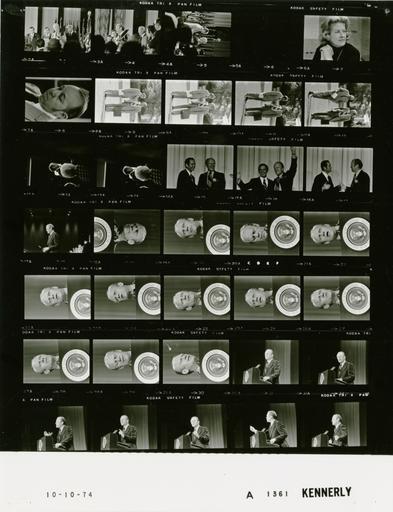 Keywords: Ford A1361 NLGRF photo contact sheet (1974-10-09)(Gerald Ford Library).jpg White House Photographic Office WHPO is housed at the Gerald R Ford Presidential Library a branch of the National Archives and Records Administration NARA <br/><br/> This file is a 200 dpi photo contact sheet having images from roll of film A1361 of the August 9 1974 - January 20 1977 Gerald R Ford White House Photographic Office Series A0001-A9999 and B0001-B2886 photographs <br/><br/> The date on the photo contact sheet is the date the roll of film was processed not necessarily the date the photographs were taken See table below for additional details 1974-10-09 Gerald R Ford Presidential Library Image http //www fordlibrarymuseum gov/library/whphotos/A1361_NLGRF jpg A1361_NLGRF jpg from http //www fordlibrarymuseum gov/library/whphotos/19741009whpo pdf White House Photographs October 9 1974 of the http //www fordlibrarymuseum gov/Library/whphotos/whpo asp White House Photographic Collection page White House Photographic Office WHPO <br/> Creator David Hume Kennerly PD-USGov Institution Institution Gerald R Ford Presidential Library Table wikitable sortable + Photo contact sheet A1361 U S President Ford Administration Gerald R Ford Library Frame s Tone Subject proper Subject generic Names Geographic Location Photographer Date - 3-5 BW Third Annual Distinguished Republican Award Dinner -Philadelphia Pennsylvania GRF at podium others standing applauding GRF William Scranton Drew Lewis Richard Schweiker Philadelphia PA Philadelphia Sheraton Hotel - Delaware Valley Suite A Kennerly 1974-10-09 - 6 BW Kennerly 1974-10-09 - 7 BW seated hands clasped near chin - 3/4 head and shoulder view Unidentified Woman White House Photo Office Kennerly 1974-10-10 - 8 BW looking down - head and shoulder portrait s Billie Shaddix White House Photo Office Kennerly 1974-10-10 - 9-12 BW Prior to flight to Andrews Air Force Base talking - standing walking towards helicopter not shown GRF Burch South Lawn Kennerly 1974-10-10 - 13-14 BW 7th General Convention of the American Lutheran Church - Detroit Michigan speaking at podium - taken from right side head of foreground GRF Detroit MI Convention Hall Cobo Hall -Detroit Civic Center Kennerly 1974-10-10 - 15-17 BW Governor of Michigan MI ; Prior to Michigan Republicans Salute the President Dinner -Detroit Michigan handshaking waving smiling GRF Gov William Milliken Detroit MI Convention Hall Cobo Hall -Detroit Civic Center Kennerly 1974-10-10 - 18 BW Address during Michigan Republicans Salute the President Dinner - Detroit Michigan GRF speaking at podium waving - taken from left low angle GRF Detroit MI Convention Hall Cobo Hall -Detroit Civic Center Kennerly 1974-10-10 - 19-30 BW Address during Michigan Republicans Salute the President Dinner - Detroit Michigan speaking at podium - close up GRF Detroit MI Convention Hall Cobo Hall -Detroit Civic Center Kennerly 1974-10-10 - 31-37 BW Address during Michigan Republicans Salute the President Dinner - Detroit Michigan speaking at podium - taken from right medium range GRF Detroit MI Convention Hall Cobo Hall -Detroit Civic Center Kennerly 1974-10-10 Gerald R Ford Presidential Library and Museum-cooperation PD-USGov Contact sheets by the Ford White House October 1974 Photographs by David Hume Kennerly from 1974 |