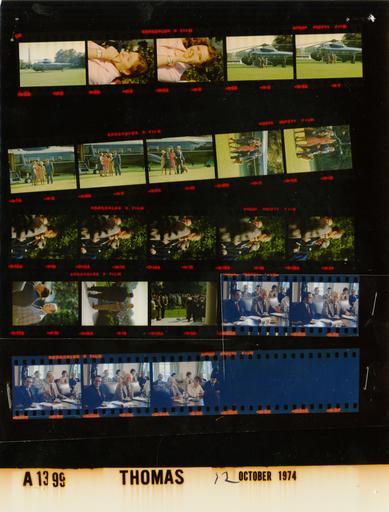 | Keywords: Ford A1399 NLGRF photo contact sheet (1974-10-12)(Gerald Ford Library).jpg White House Photographic Office WHPO is housed at the Gerald R Ford Presidential Library a branch of the National Archives and Records Administration NARA <br/><br/> This file is a 200 dpi photo contact sheet having images from roll of film A1399 of the August 9 1974 - January 20 1977 Gerald R Ford White House Photographic Office Series A0001-A9999 and B0001-B2886 photographs <br/><br/> The date on the photo contact sheet is the date the roll of film was processed not necessarily the date the photographs were taken See table below for additional details 1974-10-12 Gerald R Ford Presidential Library Image http //www fordlibrarymuseum gov/library/whphotos/A1399_NLGRF jpg A1399_NLGRF jpg from http //www fordlibrarymuseum gov/library/whphotos/19741012whpo pdf White House Photographs October 12 1974 of the http //www fordlibrarymuseum gov/Library/whphotos/whpo asp White House Photographic Collection page White House Photographic Office WHPO - Thomas PD-USGov Institution Institution Gerald R Ford Presidential Library Table wikitable sortable + Photo contact sheet A1399 U S President Ford Administration Gerald R Ford Library Frame s Tone Subject proper Subject generic Names Geographic Location Photographer Date - 25 Color Meeting of Citizens Action Committee to End Inflation seated at table - others in background GRF Gwen Anderson Others Cabinet Room Thomas 1974-10-12 - 3 Color on ground; Washington Monument in background copter Marine One South Lawn Thomas 1974-10-12 - 4-5 Color smiling hand on chin; head and shoulder portrait s Eisert South Lawn Thomas 1974-10-12 - 6-10 Color Return to White House of Mrs Ford following discharge from Bethesda Naval Hospital - Pet Golden Retriever greeting hugging standing near Marine One - helicopter in background GRF Betty Ford Susan Ford Janet Ford Liberty South Lawn Thomas 1974-10-12 - 11-12 Color Return to White House of Mrs Ford following discharge from Bethesda Naval Hospital - Pet Golden Retriever walking waving GRF Betty Ford Susan Ford Liberty South Lawn Thomas 1974-10-12 - 13-17 Color Remarks Following Swearing in of Administrator of the Veterans Administration GRF speaking into microphone; bushes and leaves in foreground GRF Others Rose Garden Thomas 1974-10-12 - 18-20 Color Swearing in of Administrator of the Veterans Administration standing talking - others in background GRF Richard Roudebush Others Rose Garden Thomas 1974-10-12 - 21-24 Color Meeting of Citizens Action Committee to End Inflation NO PHOTOGRAPHS WERE TAKEN ON THIS DATE seated at table - others in background GRF Baroody Others Cabinet Room Thomas 1974-10-12 Gerald R Ford Presidential Library and Museum-cooperation PD-USGov Contact sheets by the Ford White House October 1974 |