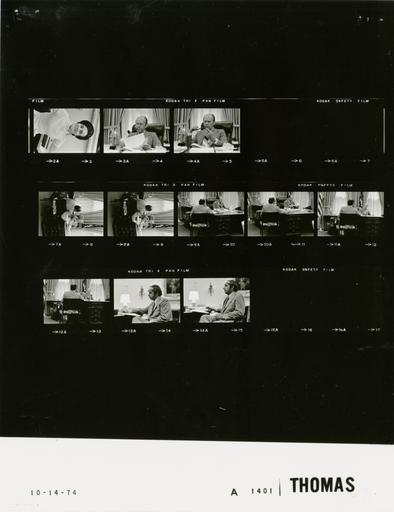 Keywords: Ford A1401 NLGRF photo contact sheet (1974-10-14)(Gerald Ford Library).jpg White House Photographic Office WHPO is housed at the Gerald R Ford Presidential Library a branch of the National Archives and Records Administration NARA <br/><br/> This file is a 200 dpi photo contact sheet having images from roll of film A1401 of the August 9 1974 - January 20 1977 Gerald R Ford White House Photographic Office Series A0001-A9999 and B0001-B2886 photographs <br/><br/> The date on the photo contact sheet is the date the roll of film was processed not necessarily the date the photographs were taken See table below for additional details 1974-10-14 Gerald R Ford Presidential Library Image http //www fordlibrarymuseum gov/library/whphotos/A1401_NLGRF jpg A1401_NLGRF jpg from http //www fordlibrarymuseum gov/library/whphotos/19741014whpo pdf White House Photographs October 14 1974 of the http //www fordlibrarymuseum gov/Library/whphotos/whpo asp White House Photographic Collection page White House Photographic Office WHPO - Thomas PD-USGov Institution Institution Gerald R Ford Presidential Library Table wikitable sortable + Photo contact sheet A1401 U S President Ford Administration Gerald R Ford Library Frame s Tone Subject proper Subject generic Names Geographic Location Photographer Date - 2A BW Staff Assistant Nell Yates Scheduling and Advance Office Thomas 1974-10-14 - 3A-4A BW seated at desk smoking pipe GRF Oval Office Thomas 1974-10-14 - 5A-6A BW Thomas 1974-10-14 - 7A-12A BW seated at desk taken over Nessen's right shoulder GRF Nessen Oval Office Thomas 1974-10-14 - 13A-14A BW seated writing on desk; glasses propped on forehead Nessen Oval Office Thomas 1974-10-14 Gerald R Ford Presidential Library and Museum-cooperation PD-USGov Contact sheets by the Ford White House October 1974 |