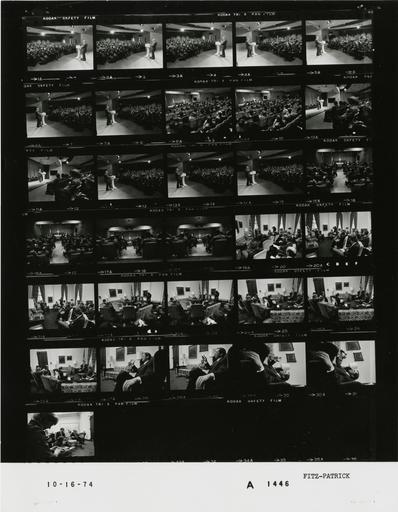 | Keywords: Ford A1446 NLGRF photo contact sheet (1974-10-16)(Gerald Ford Library).jpg White House Photographic Office WHPO is housed at the Gerald R Ford Presidential Library a branch of the National Archives and Records Administration NARA <br/><br/> This file is a 200 dpi photo contact sheet having images from roll of film A1446 of the August 9 1974 - January 20 1977 Gerald R Ford White House Photographic Office Series A0001-A9999 and B0001-B2886 photographs <br/><br/> The date on the photo contact sheet is the date the roll of film was processed not necessarily the date the photographs were taken See table below for additional details 1974-10-16 Gerald R Ford Presidential Library Image http //www fordlibrarymuseum gov/library/whphotos/A1446_NLGRF jpg A1446_NLGRF jpg from http //www fordlibrarymuseum gov/library/whphotos/19741016whpo pdf White House Photographs October 16 1974 of the http //www fordlibrarymuseum gov/Library/whphotos/whpo asp White House Photographic Collection page White House Photographic Office WHPO - Fitz-Patrick PD-USGov Institution Institution Gerald R Ford Presidential Library Table wikitable sortable + Photo contact sheet A1446 U S President Ford Administration Gerald R Ford Library Frame s Tone Subject proper Subject generic Names Geographic Location Photographer Date - 2-19 BW Special Assistant to the President; Meeting with VICA Group Nidecker speaking from podium; others seated various angles and distances Nidecker Others Old Executive Office Building OEOB -Room 450 Fitz-Patrick 1974-10-16 - 20-27 BW Press Conference; Secretary of Department of Housing and Urban Development HUD Lynn and Seidman seated Lynn speaking; media seated on left - various angles and distances Sec Lynn Seidman Media Washington DC Department of Housing and Urban Development HUD Secretary's Office Fitz-Patrick 1974-10-16 - 28-31 BW Press Conference; Secretary of Department of Housing and Urban Development HUD Lynn seated speaking gesturing; Seidman seated in background Sec Lynn Seidman Washington DC Department of Housing and Urban Development HUD - Secretary's Office Fitz-Patrick 1974-10-16 - 32 BW Press Conference; Secretary of Department of Housing and Urban Development HUD seated listening Media Washington DC Department of Housing and Urban Development HUD - Secretary's Office Fitz-Patrick 1974-10-16 Gerald R Ford Presidential Library and Museum-cooperation PD-USGov Contact sheets by the Ford White House October 1974 |