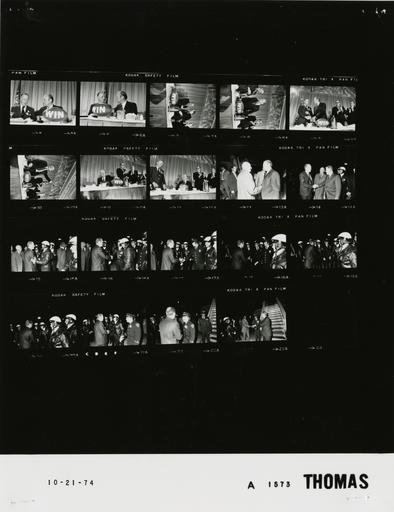 Keywords: Ford A1573 NLGRF photo contact sheet (1974-10-22)(Gerald Ford Library).jpg White House Photographic Office WHPO is housed at the Gerald R Ford Presidential Library a branch of the National Archives and Records Administration NARA <br/><br/> This file is a 200 dpi photo contact sheet having images from roll of film A1573 of the August 9 1974 - January 20 1977 Gerald R Ford White House Photographic Office Series A0001-A9999 and B0001-B2886 photographs <br/><br/> The date on the photo contact sheet is the date the roll of film was processed not necessarily the date the photographs were taken See table below for additional details 1974-10-22 Gerald R Ford Presidential Library Image http //www fordlibrarymuseum gov/library/whphotos/A1573_NLGRF jpg A1573_NLGRF jpg from http //www fordlibrarymuseum gov/library/whphotos/19741022whpo pdf White House Photographs October 22 1974 of the http //www fordlibrarymuseum gov/Library/whphotos/whpo asp White House Photographic Collection page White House Photographic Office WHPO - Thomas PD-USGov Institution Institution Gerald R Ford Presidential Library Table wikitable sortable + Photo contact sheet A1573 U S President Ford Administration Gerald R Ford Library Frame s Tone Subject proper Subject generic Names Geographic Location Photographer Date - 5-6 BW Fundraising Dinner Hosted by Ohio and Cuyahoga/ Lake Republican Finance Committees; Chairman Hanna Mining Company - Cleveland Ohio seated at table talking - WIN football on table GRF Gilbert Bud Humphrey Cleveland OH Sheraton-Cleveland Hotel - Gold Room Thomas 1974-10-22 - 7-10 BW Fundraising Dinner Hosted by Ohio and Cuyahoga/ Lake Republican Finance Committees; United States Senator from Ohio OH ; Chairman Hanna Mining Company -Cleveland Ohio waving handshaking standing behind table - WIN football on table; all not in every frame GRF Sen Taft Gilbert Bud Humphrey Platform Guests Cleveland OH Sheraton-Cleveland Hotel - Gold Room Thomas 1974-10-22 - 11 BW Fundraising Dinner Hosted by Ohio and Cuyahoga/ Lake Republican Finance Committees; United States Senator from Ohio OH - Cleveland Ohio GRF seated hand on football; others standing applauding GRF Sen Taft Platform Guests Cleveland OH Sheraton-Cleveland Hotel - Gold Room Thomas 1974-10-22 - 12 BW Fundraising Dinner Hosted by Ohio and Cuyahoga/ Lake Republican Finance Committees; United States Senator from Ohio OH ; Chairman Hanna Mining Company -Cleveland Ohio GRF seated; others standing applauding GRF Sen Taft Gilbert Bud Humphrey Platform Guests Cleveland OH Sheraton-Cleveland Hotel - Gold Room Thomas 1974-10-22 - 13-14 BW Prior to Departure from Campaign Trip to Ohio - Cleveland Ohio handshaking saying goodbye -night shot GRF Others Cleveland OH Cleveland Hopkins International Airport Thomas 1974-10-22 - 15-21 BW Prior to Departure from Campaign Trip to Ohio - Cleveland Ohio handshaking thanking officers for help night shot GRF Police Officers Cleveland OH Cleveland Hopkins International Airport Thomas 1974-10-22 - 22-23 BW Prior to Departure from Campaign Trip to Ohio - Cleveland Ohio handshaking thanking officers for help - steps to Air Force One in background night shot GRF Police Officers Cleveland OH Cleveland Hopkins International Airport Thomas 1974-10-22 Gerald R Ford Presidential Library and Museum-cooperation PD-USGov Contact sheets by the Ford White House October 1974 |