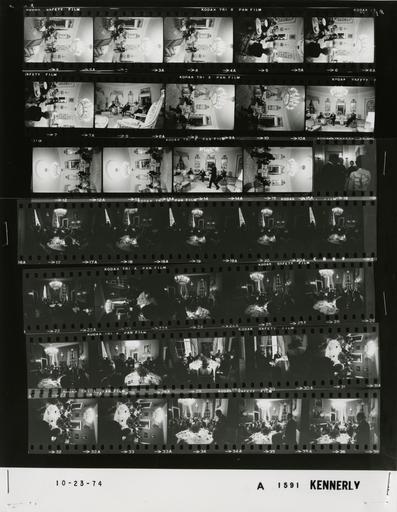 | Keywords: Ford A1591 NLGRF photo contact sheet (1974-10-23)(Gerald Ford Library).jpg White House Photographic Office WHPO is housed at the Gerald R Ford Presidential Library a branch of the National Archives and Records Administration NARA <br/><br/> This file is a 200 dpi photo contact sheet having images from roll of film A1591 of the August 9 1974 - January 20 1977 Gerald R Ford White House Photographic Office Series A0001-A9999 and B0001-B2886 photographs <br/><br/> The date on the photo contact sheet is the date the roll of film was processed not necessarily the date the photographs were taken See table below for additional details 1974-10-23 Gerald R Ford Presidential Library Image http //www fordlibrarymuseum gov/library/whphotos/A1591_NLGRF jpg A1591_NLGRF jpg from http //www fordlibrarymuseum gov/library/whphotos/19741023whpo pdf White House Photographs October 23 1974 of the http //www fordlibrarymuseum gov/Library/whphotos/whpo asp White House Photographic Collection page White House Photographic Office WHPO <br/> Creator David Hume Kennerly PD-USGov Institution Institution Gerald R Ford Presidential Library Table wikitable sortable + Photo contact sheet A1591 U S President Ford Administration Gerald R Ford Library Frame s Tone Subject proper Subject generic Names Geographic Location Photographer Date - 2-13 BW Prior to Dinner in Honor of Haig Commander-Designate of NATO Forces seated talking - various angles and distances; formal wear GRF Betty Ford Gen Mrs Haig Second Floor - Yellow Oval Room Kennerly 1974-10-23 - 14-15 BW Prior to Dinner in Honor of Haig Commander-Designate of NATO Forces seated talking; Waiter walking serving coffee; formal wear GRF Betty Ford Gen Mrs Haig; White House Waiter Second Floor - Yellow Oval Room Kennerly 1974-10-23 - 16 BW Reception Prior to Dinner in Honor of Haig Commander-Designate of NATO Forces standing talking; Haig and BF's back to camera; formal wear GRF Betty Ford Gen Mrs Haig Green Room Kennerly 1974-10-23 - 17-33 BW Dinner in Honor of Haig Commander-Designate of NATO Forces - Mother Children Siblings and In-Laws of Gen Haig seated around small tables eating -all not in every frame; formal wear GRF Betty Ford Gen Mrs Haig; Ash Armstrong Buchen Burch Marsh Rumsfeld Callaway Colby Timmons Lt Gen Fox Lt Col Fox Regina Haig; Alexander Barbara Brian Haig; Rev Franklin Haig Mr Mrs Edward Meredith spouses Others Red Room Kennerly 1974-10-23 - 34-36 BW Dinner in Honor of Haig Commander-Designate of NATO Forces - Mother Children Siblings and In-Laws of Gen Haig Haig standing speaking; others seated around small tables - all not in every frame; formal wear GRF Betty Ford Gen Mrs Haig; Ash Armstrong Buchen Burch Marsh Rumsfeld Callaway Colby Timmons Lt Gen Fox Lt Col Fox Regina Haig; Alexander Barbara Brian Haig; Rev Franklin Haig Mr Mrs Edward Meredith spouses Others Red Room Kennerly 1974-10-23 Gerald R Ford Presidential Library and Museum-cooperation PD-USGov Contact sheets by the Ford White House October 1974 Photographs by David Hume Kennerly from 1974 |