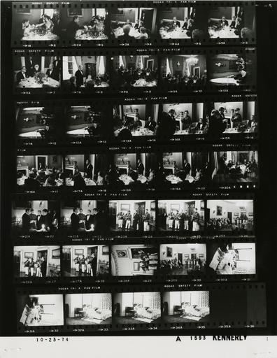 Keywords: Ford A1593 NLGRF photo contact sheet (1974-10-23)(Gerald Ford Library).jpg White House Photographic Office WHPO is housed at the Gerald R Ford Presidential Library a branch of the National Archives and Records Administration NARA <br/><br/> This file is a 200 dpi photo contact sheet having images from roll of film A1593 of the August 9 1974 - January 20 1977 Gerald R Ford White House Photographic Office Series A0001-A9999 and B0001-B2886 photographs <br/><br/> The date on the photo contact sheet is the date the roll of film was processed not necessarily the date the photographs were taken See table below for additional details 1974-10-23 Gerald R Ford Presidential Library Image http //www fordlibrarymuseum gov/library/whphotos/A1593_NLGRF jpg A1593_NLGRF jpg from http //www fordlibrarymuseum gov/library/whphotos/19741023whpo pdf White House Photographs October 23 1974 of the http //www fordlibrarymuseum gov/Library/whphotos/whpo asp White House Photographic Collection page White House Photographic Office WHPO <br/> Creator David Hume Kennerly PD-USGov Institution Institution Gerald R Ford Presidential Library Table wikitable sortable + Photo contact sheet A1593 U S President Ford Administration Gerald R Ford Library Frame s Tone Subject proper Subject generic Names Geographic Location Photographer Date - 3A-6A BW Dinner in Honor of Haig Commander-Designate of NATO Forces seated talking around table -all not in every frame; formal wear GRF Patricia Haig Rockefeller Buchen Others Red Room Kennerly 1974-10-23 - 7A BW Dinner in Honor of Haig Commander-Designate of NATO Forces GRF standing making toast; others seated around table; formal wear GRF Patricia Haig Buchen Others Red Room Kennerly 1974-10-23 - 8A-12A BW Dinner in Honor of Haig Commander-Designate of NATO Forces - Mother Children Siblings and In-Laws of Gen Haig GRF standing making toast; others seated around tables - all not in every frame; formal wear GRF Betty Ford Gen Mrs Haig; Ash Armstrong Buchen Burch Marsh Rumsfeld Callaway Colby Timmons Lt Gen Fox Lt Col Fox Regina Haig; Alexander Barbara Brian Haig; Rev Franklin Haig Mr Mrs Edward Meredith spouses Others Red Room Kennerly 1974-10-23 - 13A BW Dinner in Honor of Haig Commander-Designate of NATO Forces seated around table listening to GRF; formal wear Rumsfeld Haig Others Red Room Kennerly 1974-10-23 - 14A-15A BW Dinner in Honor of Haig Commander-Designate of NATO Forces Haig seated; others standing raising glasses; formal wear Rumsfeld Haig Others Red Room Kennerly 1974-10-23 - 16A-19A BW Dinner in Honor of Haig Commander-Designate of NATO Forces Haig standing responding to toast; others seated; formal wear Haig Betty Ford Rumsfeld Red Room Kennerly 1974-10-23 - 20A BW Dinner in Honor of Haig Commander-Designate of NATO Forces seated listening to Haig; formal wear GRF Patricia Haig Rockefeller Buchen Colby Others Red Room Kennerly 1974-10-23 - 21A-22A BW Dinner in Honor of Haig Commander-Designate of NATO Forces - Sons of Haig standing talking; formal wear Haig Brian Haig Todd Alexander Haig Red Room Kennerly 1974-10-23 - 23A-29A BW Entertainment Following Dinner in Honor of Haig Commander-Designate of NATO Forces GRF introducing group - all not in every frame; formal wear GRF USMA Glee Club Quartet Others Blue Room Kennerly 1974-10-23 - 30A-34A BW Pet Golden Retriever Susan lying on bed talking on telephone; dog lying on floor nearby Susan Ford Liberty Third Floor - Susan's Bedroom Kennerly 1974-10-23 - 1A-2A BW Dinner in Honor of Haig Commander-Designate of NATO Forces Haig shaking hands with Joyce Rumsfeld; formal wear Haig Donald Joyce Rumsfeld Red Room Kennerly 1974-10-23 Gerald R Ford Presidential Library and Museum-cooperation PD-USGov Contact sheets by the Ford White House October 1974 Photographs by David Hume Kennerly from 1974 |