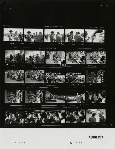 Keywords: Ford A1725 NLGRF photo contact sheet (1974-11-02)(Gerald Ford Library).jpg White House Photographic Office WHPO is housed at the Gerald R Ford Presidential Library a branch of the National Archives and Records Administration NARA <br/><br/> This file is a 200 dpi photo contact sheet having images from roll of film A1725 of the August 9 1974 - January 20 1977 Gerald R Ford White House Photographic Office Series A0001-A9999 and B0001-B2886 photographs <br/><br/> The date on the photo contact sheet is the date the roll of film was processed not necessarily the date the photographs were taken See table below for additional details 1974-11-02 Gerald R Ford Presidential Library Image http //www fordlibrarymuseum gov/library/whphotos/A1725_NLGRF jpg A1725_NLGRF jpg from http //www fordlibrarymuseum gov/library/whphotos/19741102whpo pdf White House Photographs November 2 1974 of the http //www fordlibrarymuseum gov/Library/whphotos/whpo asp White House Photographic Collection page White House Photographic Office WHPO <br/> Creator David Hume Kennerly PD-USGov Institution Institution Gerald R Ford Presidential Library Table wikitable sortable + Photo contact sheet A1725 U S President Ford Administration Gerald R Ford Library Frame s Tone Subject proper Subject generic Names Geographic Location Photographer Date - 2A BW Campaign Trip to Utah - Salt Lake City Utah standing awaiting arrival of GRF Jack Ford Steve Ford Rustand Salt Lake City UT Utah International Airport Kennerly 1974-11-02 - 3A-6A BW Campaign Trip to Utah; Sons of GRF - Salt Lake City Utah GRF and sons greeting handshaking; others smiling in background; all not in every frame GRF Jack Ford Steve Ford Rustand O'Donnell Secret Service Salt Lake City UT Utah International Airport Kennerly 1974-11-02 - 7A-8A BW Prior to Campaign Rally for Mayor Garn; Republican Senate Candidate from Utah - Salt Lake City Utah greeting handshaking GRF Unidentified Family Salt Lake City UT University of Utah Special Events Center - Room 113 Kennerly 1974-11-02 - 9A-13A BW Campaign Rally for Mayor Garn; Manager for Public and Customer Relations and Aerospace Group Executive for Thiokol Corporation - Salt Lake City Utah seated next to platform Jack Ford Steve Ford Mr Mrs James Brown Jennifer Brown Salt Lake City UT University of Utah Special Events Center Kennerly 1974-11-02 - 14A-18A BW Campaign Rally for Mayor Garn; Manager for Public and Customer Relations and Aerospace Group Executive for Thiokol Corporation - Salt Lake City Utah standing applauding Jack Ford Steve Ford Mr Mrs James Brown Jennifer Brown Salt Lake City UT University of Utah Special Events Center Kennerly 1974-11-02 - 19A BW Campaign Rally for Mayor Garn; Republican Senate Candidate from Utah -Salt Lake City Utah GRF at podium others standing GRF Platform Guests Crowd Salt Lake City UT University of Utah Special Events Center Kennerly 1974-11-02 - 20A BW Campaign Rally for Mayor Garn; Mayor of Salt Lake City; Republican Senate Candidate from Utah - Salt Lake City Utah GRF and Garn walking toward exit GRF Mayor Garn Others Salt Lake City UT University of Utah Special Events Center Kennerly 1974-11-02 - 21A-25A BW Impromptu Conference Following Campaign Rally for Mayor Garn; Mayor of Salt Lake City; Republican Senate Candidate from Utah; Sons of GRF - Salt Lake City Utah mingling talking GRF Students Salt Lake City UT Kennerly 1974-11-02 - 26A BW Following Campaign Rally for Mayor Garn - Son of GRF - Salt Lake City Utah standing talking; GRF wearing cowboy hat GRF Jack Ford Salt Lake City UT University of Utah Special Events Center Kennerly 1974-11-02 Gerald R Ford Presidential Library and Museum-cooperation PD-USGov Contact sheets by the Ford White House November 1974 Photographs by David Hume Kennerly from 1974 |