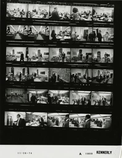 | Keywords: Ford A1809 NLGRF photo contact sheet (1974-11-06)(Gerald Ford Library).jpg White House Photographic Office WHPO is housed at the Gerald R Ford Presidential Library a branch of the National Archives and Records Administration NARA <br/><br/> This file is a 200 dpi photo contact sheet having images from roll of film A1809 of the August 9 1974 - January 20 1977 Gerald R Ford White House Photographic Office Series A0001-A9999 and B0001-B2886 photographs <br/><br/> The date on the photo contact sheet is the date the roll of film was processed not necessarily the date the photographs were taken See table below for additional details 1974-11-06 Gerald R Ford Presidential Library Image http //www fordlibrarymuseum gov/library/whphotos/A1809_NLGRF jpg A1809_NLGRF jpg from http //www fordlibrarymuseum gov/library/whphotos/19741106whpo pdf White House Photographs November 6 1974 of the http //www fordlibrarymuseum gov/Library/whphotos/whpo asp White House Photographic Collection page White House Photographic Office WHPO <br/> Creator David Hume Kennerly PD-USGov Institution Institution Gerald R Ford Presidential Library Table wikitable sortable + Photo contact sheet A1809 U S President Ford Administration Gerald R Ford Library Frame s Tone Subject proper Subject generic Names Geographic Location Photographer Date - 2A-4A BW Presidential Tour of Old Executive Office Building greeting handshaking standing talking - all not in every frame see sheet GRF Clara Hyatt Ann Bradshaw Avis Queen Charlene Volpe Pauline Dufresne Gail Marsh Grace Jones Mildred Donaldson Gail Marsh Helen Williams Ellen Strichartz Rachel Saunders Janet Curtis Sharon Stewart Old Executive Office Building OEOB -Correspondence Kennerly 1974-11-06 - 5A-6A BW Presidential Tour of Old Executive Office Building greeting handshaking standing talking GRF Barbara Lyle Frances Wessel Charlene Baer Rachel Saunders Sharon Stewart Barbara Riegner Old Executive Office Building OEOB -Correspondence Kennerly 1974-11-06 - 7A-9A BW Presidential Tour of Old Executive Office Building greeting handshaking standing talking - all not in every frame see sheet GRF Mary Derszer Annita Holland Linda Clawson Amelia Houston Virginia Tyndall James Collier Elsie Brookshier Lorraine Royster Elisa Surrusco Clara Hyatt Maureen Hudson C Shackelford C Samaha Alice McPhillips Nick Merlino Robert Anderson Old Executive Office Building OEOB -Correspondence Kennerly 1974-11-06 - 10A BW Presidential Tour of Old Executive Office Building standing talking GRF Unidentified Woman Old Executive Office Building OEOB -Correspondence Kennerly 1974-11-06 - 11A BW Presidential Tour of Old Executive Office Building greeting handshaking GRF Marge Acker Old Executive Office Building OEOB -Correspondence Kennerly 1974-11-06 - 12A-18A BW Presidential Tour of Old Executive Office Building greeting handshaking standing talking GRF Rosemary Woods Old Executive Office Building OEOB -Correspondence Kennerly 1974-11-06 - 19A-21A BW Presidential Tour of Old Executive Office Building standing talking - looking at cartoon in first frame; all not in every frame GRF Rumsfeld O'Donnell Old Executive Office Building OEOB -Vice President's Office Kennerly 1974-11-06 - 22A BW Following Presidential Tour of Old Executive Office Building walking toward West Wing GRF Rumsfeld Secret Service Sidewalk Between Old Executive Office Building OEOB and White House Kennerly 1974-11-06 - 23A-24A BW Presidential Tour of West Wing greeting handshaking standing talking - all not in every frame see sheet GRF Judy Licata Diana Gwin Sara Currence Basement -Staff Secretary's Office Kennerly 1974-11-06 - 25A-26A BW Presidential Tour of West Wing - Deputy Assistant to the President greeting handshaking standing talking GRF Jerry Jones Basement -Staff Secretary's Office Kennerly 1974-11-06 - 27A BW Presidential Tour of West Wing - Deputy Staff Secretary greeting handshaking GRF Hoopes Basement -Staff Secretary's Office Kennerly 1974-11-06 - 28A BW Presidential Tour of West Wing - Secretarial Assistant greeting handshaking GRF Catherine Finley Basement -Office of the Chief Executive Clerk Kennerly 1974-11-06 - 29A-31A BW Presidential Tour of West Wing greeting handshaking standing talking - all not in every frame see sheet GRF Madeline Horton Cornelius Johnson Clarence Hawkins Norman Higginbotham Lawrence Hall Timothy Dundar Addison Wilborn George Parker Valeria Biribin Basement -Messenger Room Kennerly 1974-11-06 Gerald R Ford Presidential Library and Museum-cooperation PD-USGov Contact sheets by the Ford White House November 1974 Photographs by David Hume Kennerly from 1974 |