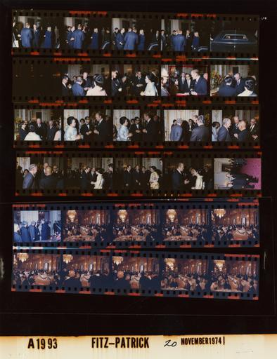 | Keywords: Ford A1993 NLGRF photo contact sheet (1974-11-20)(Gerald Ford Library).jpg  White House Photographic Office WHPO is housed at the Gerald R Ford Presidential Library a branch of the National Archives and Records Administration NARA <br/><br/> This file is a 200 dpi photo contact sheet having images from roll of film A1993 of the August 9 1974 - January 20 1977 Gerald R Ford White House Photographic Office Series A0001-A9999 and B0001-B2886 photographs <br/><br/> The date on the photo contact sheet is the date the roll of film was processed not necessarily the date the photographs were taken See table below for additional details 1974-11-20 Gerald R Ford Presidential Library Image http //www fordlibrarymuseum gov/library/whphotos/A1993_NLGRF jpg A1993_NLGRF jpg from http //www fordlibrarymuseum gov/library/whphotos/19741120whpo pdf White House Photographs November 20 1974 of the http //www fordlibrarymuseum gov/Library/whphotos/whpo asp White House Photographic Collection page White House Photographic Office WHPO - Fitz-Patrick PD-USGov Institution Institution Gerald R Ford Presidential Library Table wikitable sortable + Photo contact sheet A1993 U S President Ford Administration Gerald R Ford Library Frame s Tone Subject proper Subject generic Names Geographic Location Photographer Date - 7A Color Trip to Japan - 1st Visit to Japan by Sitting U S President - Reciprocal Reception - Local Time backs of heads seen through rear window Unidentified Men in Limousine Tokyo Japan Akasaka Palace - Outside Fitz-Patrick 1974-11-20 - 8A Color Trip to Japan - 1st Visit to Japan by Sitting U S President - Reciprocal Reception - Local Time Tokyo Japan Akasaka Palace - Outside Fitz-Patrick 1974-11-20 - 9A-10A Color Trip to Japan - 1st Visit to Japan by Sitting U S President - Reciprocal Reception - Local Time standing talking greeting handshaking; all not in every frame GRF Ohira Kissinger Hartmann Others Tokyo Japan Akasaka Palace Fitz-Patrick 1974-11-20 - 11A-18A Color Trip to Japan - 1st Visit to Japan by Sitting U S President - Reciprocal Reception - Local Time standing talking greeting handshaking GRF Others Tokyo Japan Akasaka Palace Fitz-Patrick 1974-11-20 - 19A-21A Color Trip to Japan - 1st Visit to Japan by Sitting U S President - Reciprocal Reception - Crown Prince and Princess - Local Time standing talking greeting handshaking; all not in every frame GRF Rumsfeld Amb Hodgson Prince Akihito Princess Mikasa Tokyo Japan Akasaka Palace Fitz-Patrick 1974-11-20 - 22A Color Trip to Japan - 1st Visit to Japan by Sitting U S President - Reciprocal Reception - Emperor of Japan - Local Time standing for ceremony GRF Hirohito Others Tokyo Japan Akasaka Palace Fitz-Patrick 1974-11-20 - 23A Color Trip to Japan - 1st Visit to Japan by Sitting U S President - Reciprocal Reception - Emperor of Japan - Local Time standing talking near Dining Room GRF Hirohito Others Tokyo Japan Akasaka Palace Fitz-Patrick 1974-11-20 - 24A-28A Color Trip to Japan - 1st Visit to Japan by Sitting U S President - Reciprocal Dinner - Emperor and Empress; Crown Prince and Princess of Japan - Local Time GRF standing making toast; others seated; wait staff standing behind GRF - long shots GRF Hirohito Empress Nagako; Prince Akihito Princess Mikasa Kissinger Ambs Catto Hodgson; Guests Wait Staff Tokyo Japan Akasaka Palace - Dining Room Fitz-Patrick 1974-11-20 - 29A-30A Color Trip to Japan - 1st Visit to Japan by Sitting U S President - Reciprocal Dinner - Emperor and Empress; Crown Prince and Princess of Japan - Local Time standing raising glasses; wait staff standing behind GRF - long shots GRF Hirohito Empress Nagako; Prince Akihito Princess Mikasa Kissinger Ambs Catto Hodgson; Guests Wait Staff Tokyo Japan Akasaka Palace - Dining Room Fitz-Patrick 1974-11-20 - 31A-32A Color Trip to Japan - 1st Visit to Japan by Sitting U S President - Reciprocal Dinner - Emperor and Empress; Crown Prince and Princess of Japan - Local Time Hirohito standing making toast; others seated; wait staff standing behind GRF - long shots GRF Hirohito Empress Nagako; Prince Akihito Princess Mikasa Kissinger Ambs Catto Hodgson; Guests Wait Staff Tokyo Japan Akasaka Palace - Dining Room Fitz-Patrick 1974-11-20 - 3A-6A Color Trip to Japan - 1st Visit to Japan by Sitting U S President - Reciprocal Reception - Local Time greeting handshaking near limousine GRF Amb Hodgson Others Tokyo Japan Akasaka Palace - Outside Fitz-Patrick 1974-11-20 Gerald R Ford Presidential Library and Museum-cooperation PD-USGov Contact sheets by the Ford White House November 1974  |