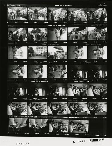 Keywords: Ford A2027 NLGRF photo contact sheet (1974-11-17)(Gerald Ford Library).jpg White House Photographic Office WHPO is housed at the Gerald R Ford Presidential Library a branch of the National Archives and Records Administration NARA <br/><br/> This file is a 200 dpi photo contact sheet having images from roll of film A2027 of the August 9 1974 - January 20 1977 Gerald R Ford White House Photographic Office Series A0001-A9999 and B0001-B2886 photographs <br/><br/> The date on the photo contact sheet is the date the roll of film was processed not necessarily the date the photographs were taken See table below for additional details 1974-11-17 Gerald R Ford Presidential Library Image http //www fordlibrarymuseum gov/library/whphotos/A2027_NLGRF jpg A2027_NLGRF jpg from http //www fordlibrarymuseum gov/library/whphotos/19741117whpo pdf White House Photographs November 17 1974 of the http //www fordlibrarymuseum gov/Library/whphotos/whpo asp White House Photographic Collection page White House Photographic Office WHPO <br/> Creator David Hume Kennerly PD-USGov Institution Institution Gerald R Ford Presidential Library Table wikitable sortable + Photo contact sheet A2027 U S President Ford Administration Gerald R Ford Library Frame s Tone Subject proper Subject generic Names Geographic Location Photographer Date - 2-4 BW Departure Ceremony Prior to Helicopter Flight to Andrews Air Force Base greeting handshaking mingling; GRF walking towards South Lawn - under canopy GRF Staff Crowd South Portico Kennerly 1974-11-17 - 5-7 BW Departure Ceremony Prior to Helicopter Flight to Andrews Air Force Base greeting handshaking; GRF kissing Mrs Buchen; GRF walking towards South Lawn - under canopy GRF Philip Bunny Buchen South Portico Kennerly 1974-11-17 - 8 BW Departure Ceremony Prior to Helicopter Flight to Andrews Air Force Base greeting handshaking mingling; GRF walking towards South Lawn GRF Reps Arends Rhodes Wives South Driveway Kennerly 1974-11-17 - 9-10 BW Departure Ceremony Prior to Helicopter Flight to Andrews Air Force Base standing talking; aide holding umbrella GRF Kissinger Schlesinger South Lawn Kennerly 1974-11-17 - 11 BW Departure Ceremony Prior to Helicopter Flight to Andrews Air Force Base standing talking; aide holding umbrella Betty Ford Kissinger Schlesinger South Lawn Kennerly 1974-11-17 - 12-14 BW Departure Ceremony Prior to Helicopter Flight to Andrews Air Force Base standing; many under umbrellas; all not in every frame Rumsfeld Staff Crowd South Lawn Kennerly 1974-11-17 - 15-19 BW Departure Ceremony Prior to Helicopter Flight to Andrews Air Force Base walking towards Marine One; aide holding umbrella - taken from helicopter door GRF Betty Ford Others South Lawn Kennerly 1974-11-17 - 20-24 BW Helicopter Flight to Andrews Air Force Base seated wearing fur cap with ear flaps GRF Marine One Kennerly 1974-11-17 - 25-35 BW Impromptu Press Conference During Flight from Andrews Air Force Base to Elmendorf Air Force Base all but media standing; HAK speaking Kissinger Scowcroft Nessen Tom Brokaw Other Media Air Force One Kennerly 1974-11-17 Gerald R Ford Presidential Library and Museum-cooperation PD-USGov Contact sheets by the Ford White House November 1974 Photographs by David Hume Kennerly from 1974 Fur fashion in 1974 Fur collars Mink clothing |