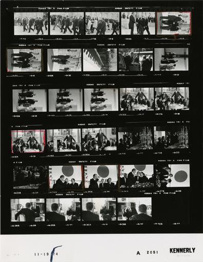 Keywords: Ford A2051 NLGRF photo contact sheet (1974-11-18)(Gerald Ford Library).jpg White House Photographic Office WHPO is housed at the Gerald R Ford Presidential Library a branch of the National Archives and Records Administration NARA <br/><br/> This file is a 200 dpi photo contact sheet having images from roll of film A2051 of the August 9 1974 - January 20 1977 Gerald R Ford White House Photographic Office Series A0001-A9999 and B0001-B2886 photographs <br/><br/> The date on the photo contact sheet is the date the roll of film was processed not necessarily the date the photographs were taken See table below for additional details 1974-11-18 Gerald R Ford Presidential Library Image http //www fordlibrarymuseum gov/library/whphotos/A2051_NLGRF jpg A2051_NLGRF jpg from http //www fordlibrarymuseum gov/library/whphotos/19741118whpo pdf White House Photographs November 18 1974 of the http //www fordlibrarymuseum gov/Library/whphotos/whpo asp White House Photographic Collection page White House Photographic Office WHPO <br/> Creator David Hume Kennerly PD-USGov Institution Institution Gerald R Ford Presidential Library Table wikitable sortable + Photo contact sheet A2051 U S President Ford Administration Gerald R Ford Library Frame s Tone Subject proper Subject generic Names Geographic Location Photographer Date - 4-6 BW Trip to Japan - 1st Visit to Japan by Sitting U S President - Arrival at Palace - Head of Suite of Honour - Local Time walking towards Palace; all not in every frame GRF Kissinger Secret Service Amb Nobuhiko Ushiba Japanese Officials Tokyo Japan Akasaka Palace - Outside Kennerly 1974-11-18 - 17-21 BW Trip to Japan - 1st Visit to Japan by Sitting U S President - Discussions Prior to Meeting with Prime Minister Kakuei Tanaka - Local Time sitting and standing around table Kissinger Habib Scowcroft Richard Smyser NSC Interpreter Others Tokyo Japan Akasaka Palace - Second Floor Salon Kennerly 1974-11-19 - 7-10 BW Trip to Japan - 1st Visit to Japan by Sitting U S President - Arrival Ceremony -Emperor of Japan - Local Time greeting handshaking; standing for anthems GRF Hirohito Interpreter Others Tokyo Japan Akasaka Palace - Outside Kennerly 1974-11-19 - 11 BW Trip to Japan - 1st Visit to Japan by Sitting U S President - Arrival Ceremony - Local Time greeting handshaking -long shot GRF Long Line of Unidentified Officials Tokyo Japan Akasaka Palace - Outside Kennerly 1974-11-19 - 12 BW Trip to Japan - 1st Visit to Japan by Sitting U S President - Visit to Imperial Palace - Emperor of Japan - Local Time GRF stepping out of limousine GRF Hirohito Interpreter Others Tokyo Japan Imperial Palace - Outside Kennerly 1974-11-19 - 13-16 BW Trip to Japan - 1st Visit to Japan by Sitting U S President - Visit to Imperial Palace - Emperor and Empress of Japan - Local Time standing posing smiling GRF Hirohito Nagako Tokyo Japan Imperial Palace - Takeno-ma Kennerly 1974-11-19 - 22-23 BW Trip to Japan - 1st Visit to Japan by Sitting U S President - Luncheon at Residence of Japanese Prime Minister - Local Time Tanaka standing offering toast; others seated GRF Kakuei Tanaka Others Tokyo Japan Prime Minister's Residence Kennerly 1974-11-19 - 24 BW Trip to Japan - 1st Visit to Japan by Sitting U S President - Luncheon at Residence of Japanese Prime Minister - Local Time seated at tables Crowd Tokyo Japan Prime Minister's Residence Kennerly 1974-11-19 - 25-28 BW Trip to Japan - 1st Visit to Japan by Sitting U S President - Luncheon at Residence of Japanese Prime Minister - Local Time standing holding glasses in toast; being seated GRF Kakuei Tanaka Others Tokyo Japan Prime Minister's Residence Kennerly 1974-11-19 - 29-32 BW Trip to Japan - 1st Visit to Japan by Sitting U S President - Local Time seated talking; GRF smoking pipe; HAK's back to camera GRF Kissinger Tokyo Japan Akasaka Palace - Suite of Honour President's Quarters Kennerly 1974-11-19 Gerald R Ford Presidential Library and Museum-cooperation PD-USGov Contact sheets by the Ford White House November 1974 Photographs by David Hume Kennerly from 1974 |