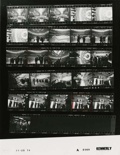 Keywords: Ford A2069 NLGRF photo contact sheet (1974-11-20)(Gerald Ford Library).jpg White House Photographic Office WHPO is housed at the Gerald R Ford Presidential Library a branch of the National Archives and Records Administration NARA <br/><br/> This file is a 200 dpi photo contact sheet having images from roll of film A2069 of the August 9 1974 - January 20 1977 Gerald R Ford White House Photographic Office Series A0001-A9999 and B0001-B2886 photographs <br/><br/> The date on the photo contact sheet is the date the roll of film was processed not necessarily the date the photographs were taken See table below for additional details 1974-11-20 Gerald R Ford Presidential Library Image http //www fordlibrarymuseum gov/library/whphotos/A2069_NLGRF jpg A2069_NLGRF jpg from http //www fordlibrarymuseum gov/library/whphotos/19741120whpo pdf White House Photographs November 20 1974 of the http //www fordlibrarymuseum gov/Library/whphotos/whpo asp White House Photographic Collection page White House Photographic Office WHPO <br/> Creator David Hume Kennerly PD-USGov Institution Institution Gerald R Ford Presidential Library Table wikitable sortable + Photo contact sheet A2069 U S President Ford Administration Gerald R Ford Library Frame s Tone Subject proper Subject generic Names Geographic Location Photographer Date - 2-4 BW Trip to Japan - 1st Visit to Japan by Sitting U S President - Local Time preparing room for State Dinner Palace Staff Tokyo Japan Akasaka Palace - Banquet Hall Kennerly 1974-11-20 - 5-15 BW Trip to Japan - 1st Visit to Japan by Sitting U S President - Following Exhibition of Traditional and Modern Japanese Athletics - Local Time greeting handshaking; walking off of floor - GRF waving GRF Athletes Tokyo Japan Budokan Sports Arena Kennerly 1974-11-20 - 16-27 BW Trip to Japan - 1st Visit to Japan by Sitting U S President - Reception Sponsored by Japanese Diet - Speaker of the House of Representatives - Local Time greeting handshaking standing; glasses raised for toast GRF Shigesaburo Maeo Japanese Legislators Tokyo Japan Ohura Hotel - Akebono Room Kennerly 1974-11-20 Gerald R Ford Presidential Library and Museum-cooperation PD-USGov Contact sheets by the Ford White House November 1974 Photographs by David Hume Kennerly from 1974 |