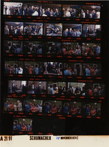 Keywords: Ford A2191 NLGRF photo contact sheet (1974-11-28)(Gerald Ford Library).jpg White House Photographic Office WHPO is housed at the Gerald R Ford Presidential Library a branch of the National Archives and Records Administration NARA <br/><br/> This file is a 200 dpi photo contact sheet having images from roll of film A2191 of the August 9 1974 - January 20 1977 Gerald R Ford White House Photographic Office Series A0001-A9999 and B0001-B2886 photographs <br/><br/> The date on the photo contact sheet is the date the roll of film was processed not necessarily the date the photographs were taken See table below for additional details 1974-11-28 Gerald R Ford Presidential Library Image http //www fordlibrarymuseum gov/library/whphotos/A2191_NLGRF jpg A2191_NLGRF jpg from http //www fordlibrarymuseum gov/library/whphotos/19741128whpo pdf White House Photographs November 28 1974 of the http //www fordlibrarymuseum gov/Library/whphotos/whpo asp White House Photographic Collection page White House Photographic Office WHPO - Schumacher PD-USGov Institution Institution Gerald R Ford Presidential Library Table wikitable sortable + Photo contact sheet A2191 U S President Ford Administration Gerald R Ford Library Frame s Tone Subject proper Subject generic Names Geographic Location Photographer Date - 17-18 Color Member of 30-30 Club; 1930 Grand Rapids South High School Football Team standing talking - all not in both frames GRF Silas Sikes McGee 30-30 Club Members Green Room Schumacher 1974-11-28 - 5 Color 1930 Grand Rapids South High School Football Team standing talking under canopy 30-30 Club Members South Portico Schumacher 1974-11-28 - 6-13 Color Member of 30-30 Club; 1930 Grand Rapids South High School Football Team greeting handshaking talking - all not in every frame; Susan Ford in frame 8 GRF Silas Sikes McGee 30-30 Club Members Ground Floor -Diplomatic Reception Room Schumacher 1974-11-28 - 14-16 Color Member of 30-30 Club; 1930 Grand Rapids South High School Football Team greeting handshaking talking - all not in every frame GRF Silas Sikes McGee 30-30 Club Members Entrance Hall/Grand Hall Schumacher 1974-11-28 - 19-21 Color 1930 Grand Rapids South High School Football Team greeting handshaking talking - all not in every frame Betty Ford 30-30 Club Members Green Room Schumacher 1974-11-28 - 22 Color 1930 Grand Rapids South High School Football Team GRF seated back to camera GRF 30-30 Club Member Green Room Schumacher 1974-11-28 - 23-24 Color 1930 Grand Rapids South High School Football Team greeting handshaking talking - all not in every frame Betty Ford 30-30 Club Spouses Green Room Schumacher 1974-11-28 - 25-27 Color 1930 Grand Rapids South High School Football Team standing; GRF signing autograph wearing white baseball cap GRF 30-30 Club Member Green Room Schumacher 1974-11-28 - 28-35 Color 1930 Grand Rapids South High School Football Team greeting handshaking talking - all not in every frame Betty Ford 30-30 Club Members Spouses Green Room Schumacher 1974-11-28 Gerald R Ford Presidential Library and Museum-cooperation PD-USGov Contact sheets by the Ford White House November 1974 |