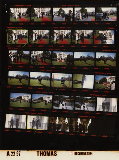 Keywords: Ford A2297 NLGRF photo contact sheet (1974-12-05)(Gerald Ford Library).jpg White House Photographic Office WHPO is housed at the Gerald R Ford Presidential Library a branch of the National Archives and Records Administration NARA <br/><br/> This file is a 200 dpi photo contact sheet having images from roll of film A2297 of the August 9 1974 - January 20 1977 Gerald R Ford White House Photographic Office Series A0001-A9999 and B0001-B2886 photographs <br/><br/> The date on the photo contact sheet is the date the roll of film was processed not necessarily the date the photographs were taken See table below for additional details 1974-12-05 Gerald R Ford Presidential Library Image http //www fordlibrarymuseum gov/library/whphotos/A2297_NLGRF jpg A2297_NLGRF jpg from http //www fordlibrarymuseum gov/library/whphotos/19741205whpo pdf White House Photographs December 5 1974 of the http //www fordlibrarymuseum gov/Library/whphotos/whpo asp White House Photographic Collection page White House Photographic Office WHPO - Thomas PD-USGov Institution Institution Gerald R Ford Presidential Library Table wikitable sortable + Photo contact sheet A2297 U S President Ford Administration Gerald R Ford Library Frame s Tone Subject proper Subject generic Names Geographic Location Photographer Date - 4A-5A Color Prior to Visit of Chancellor of the Federal Republic of Germany FRG West Germany - Chief of Naval Operations greeting handshaking GRF Kissinger Nancy Kissinger Adm Mrs James Holloway South Lawn Thomas 1974-12-05 - 6A Color State Arrival Ceremony for Chancellor of the Federal Republic of Germany FRG West Germany directing Herald Trumpeters Military Conductor South Driveway Thomas 1974-12-05 - 7A-8A Color State Arrival Ceremony for Chancellor of the Federal Republic of Germany FRG West Germany - Minister of Foreign Affairs greeting handshaking near limousine GRF Helmut Schmidt Hans-Dietrich Genscher Catto South Driveway Thomas 1974-12-05 - 9A-13A Color State Arrival Ceremony for Chancellor of the Federal Republic of Germany FRG West Germany - Minister of Foreign Affairs; Chief of Naval Operations greeting handshaking -all not in every frame GRF Helmut Schmidt Hans-Dietrich Genscher Kissinger Nancy Kissinger Adm Mrs James Holloway South Lawn Thomas 1974-12-05 - 14A-15A Color State Arrival Ceremony for Chancellor of the Federal Republic of Germany FRG West Germany standing talking on red carpet GRF Helmut Schmidt South Lawn Thomas 1974-12-05 - 16A Color State Arrival Ceremony for Chancellor of the Federal Republic of Germany FRG West Germany GRF and Schmidt standing on podium for German anthem; Others and White House in background GRF Helmut Schmidt Hans-Dietrich Genscher Kissinger Nancy Kissinger Adm Mrs James Holloway South Lawn Thomas 1974-12-05 - 17A-22A Color State Arrival Ceremony for Chancellor of the Federal Republic of Germany FRG West Germany walking past Honor Guard and back to podium GRF Helmut Schmidt South Lawn Thomas 1974-12-05 - 23A Color State Arrival Ceremony for Chancellor of the Federal Republic of Germany FRG West Germany GRF and Schmidt standing on podium; Others and White House in background -long shot GRF Helmut Schmidt Hans-Dietrich Genscher Kissinger Nancy Kissinger Adm Mrs James Holloway Crowd South Lawn Thomas 1974-12-05 - 24A-25A Color State Arrival Ceremony for Chancellor of the Federal Republic of Germany FRG West Germany GRF and Schmidt standing on podium; Marine Corps Band parading in foreground; Others and White House in background -long shot GRF Helmut Schmidt Hans-Dietrich Genscher Kissinger Nancy Kissinger Adm Mrs James Holloway Crowd; Marine Corps Band South Lawn Thomas 1974-12-05 - 26A-27A Color State Arrival Ceremony for Chancellor of the Federal Republic of Germany FRG West Germany walking towards Blue Room Balcony steps - taken from Blue Room Balcony GRF Helmut Schmidt South Driveway Thomas 1974-12-05 - 28A-30A Color State Arrival Ceremony for Chancellor of the Federal Republic of Germany FRG West Germany standing posing talking GRF Helmut Schmidt Blue Room Balcony Thomas 1974-12-05 - 31A-32A Color Reception Following State Arrival Ceremony for Chancellor of the Federal Republic of Germany FRG West Germany greeting handshaking talking - all not in every frame GRF Helmut Schmidt Catto Others Blue Room Thomas 1974-12-05 Gerald R Ford Presidential Library and Museum-cooperation PD-USGov Contact sheets by the Ford White House December 1974 |
