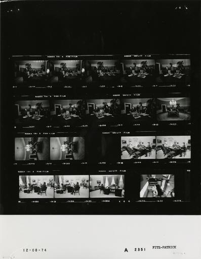 | Keywords: Ford A2351 NLGRF photo contact sheet (1974-12-09)(Gerald Ford Library).jpg White House Photographic Office WHPO is housed at the Gerald R Ford Presidential Library a branch of the National Archives and Records Administration NARA <br/><br/> This file is a 200 dpi photo contact sheet having images from roll of film A2351 of the August 9 1974 - January 20 1977 Gerald R Ford White House Photographic Office Series A0001-A9999 and B0001-B2886 photographs <br/><br/> The date on the photo contact sheet is the date the roll of film was processed not necessarily the date the photographs were taken See table below for additional details 1974-12-09 Gerald R Ford Presidential Library Image http //www fordlibrarymuseum gov/library/whphotos/A2351_NLGRF jpg A2351_NLGRF jpg from http //www fordlibrarymuseum gov/library/whphotos/19741209whpo pdf White House Photographs December 9 1974 of the http //www fordlibrarymuseum gov/Library/whphotos/whpo asp White House Photographic Collection page White House Photographic Office WHPO - Fitz-Patrick PD-USGov Institution Institution Gerald R Ford Presidential Library Table wikitable sortable + Photo contact sheet A2351 U S President Ford Administration Gerald R Ford Library Frame s Tone Subject proper Subject generic Names Geographic Location Photographer Date - 3A-14A BW Friend of GRF President Gospel Films Inc seated at table eating breakfast talking -White House Waiter Gene Allen in one frame - various angles and distances GRF Billy Zeoli Second Floor - Family Dining Room Fitz-Patrick 1974-12-09 - 15A BW Fitz-Patrick 1974-12-09 - 16A-20A BW Former Assistant to the President of the Senate GRF seated around desk - various angles GRF Walter Mote Oval Office Fitz-Patrick 1974-12-09 - 21A BW Fitz-Patrick 1974-12-09 Gerald R Ford Presidential Library and Museum-cooperation PD-USGov Contact sheets by the Ford White House December 1974 |
