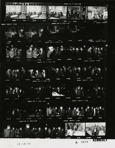 Keywords: Ford A2379 NLGRF photo contact sheet (1974-12-10)(Gerald Ford Library).jpg White House Photographic Office WHPO is housed at the Gerald R Ford Presidential Library a branch of the National Archives and Records Administration NARA <br/><br/> This file is a 200 dpi photo contact sheet having images from roll of film A2379 of the August 9 1974 - January 20 1977 Gerald R Ford White House Photographic Office Series A0001-A9999 and B0001-B2886 photographs <br/><br/> The date on the photo contact sheet is the date the roll of film was processed not necessarily the date the photographs were taken See table below for additional details 1974-12-10 Gerald R Ford Presidential Library Image http //www fordlibrarymuseum gov/library/whphotos/A2379_NLGRF jpg A2379_NLGRF jpg from http //www fordlibrarymuseum gov/library/whphotos/19741210whpo pdf White House Photographs December 10 1974 of the http //www fordlibrarymuseum gov/Library/whphotos/whpo asp White House Photographic Collection page White House Photographic Office WHPO <br/> Creator David Hume Kennerly PD-USGov Institution Institution Gerald R Ford Presidential Library Table wikitable sortable + Photo contact sheet A2379 U S President Ford Administration Gerald R Ford Library Frame s Tone Subject proper Subject generic Names Geographic Location Photographer Date - 1A-3A BW Prior to National Football Foundation and Hall of Fame Awards Dinner - Chairman and President National Football Foundation and Hall of Fame Inc - New York City New York seated talking wearing tuxedos GRF Vincent Draddy Richard Kazmaier New York City NY Waldorf Astoria Hotel - President's Suite Kennerly 1974-12-10 - 4A BW Prior to National Football Foundation and Hall of Fame Awards Dinner - Chairman and President National Football Foundation and Hall of Fame Inc - New York City New York walking toward Ballroom GRF Vincent Draddy Richard Kazmaier Others New York City NY Waldorf Astoria Hotel - -Hallway Kennerly 1974-12-10 - 5A BW Prior to National Football Foundation and Hall of Fame Awards Dinner - New York City New York taking photos Photographers New York City NY Waldorf Astoria Hotel - Grand Ballroom Kennerly 1974-12-10 - 6A-9A BW National Football Foundation and Hall of Fame Awards Dinner - New York City New York GRF at podium speaking; others seated - all not in every frame GRF Platform Guest Others New York City NY Waldorf Astoria Hotel - Grand Ballroom Kennerly 1974-12-10 - 10A BW Kennerly 1974-12-10 - 11A-33A BW Prior to Departure for Kennedy International Airport - New York City New York greeting handshaking saying goodbye - all not in every frame GRF New York City Firemen Police Officers Officials New York City NY Wall Street Heliport Kennerly 1974-12-10 - 34A-35A BW Flight from Kennedy International Airport to Andrews Air Force Base working on plane - not in both frames Rumsfeld Zarb Others Air Force One Kennerly 1974-12-10 Gerald R Ford Presidential Library and Museum-cooperation PD-USGov Contact sheets by the Ford White House December 1974 Photographs by David Hume Kennerly from 1974 |
