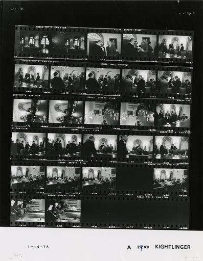 Keywords: Ford A2780 NLGRF photo contact sheet (1975-01-14)(Gerald Ford Library).jpg White House Photographic Office WHPO is housed at the Gerald R Ford Presidential Library a branch of the National Archives and Records Administration NARA <br/><br/> This file is a 200 dpi photo contact sheet having images from roll of film A2780 of the August 9 1974 - January 20 1977 Gerald R Ford White House Photographic Office Series A0001-A9999 and B0001-B2886 photographs <br/><br/> The date on the photo contact sheet is the date the roll of film was processed not necessarily the date the photographs were taken See table below for additional details 1975-01-14 Gerald R Ford Presidential Library Image http //www fordlibrarymuseum gov/library/whphotos/A2780_NLGRF jpg A2780_NLGRF jpg from http //www fordlibrarymuseum gov/library/whphotos/19750114whpo pdf White House Photographs January 14 1975 of the http //www fordlibrarymuseum gov/Library/whphotos/whpo asp White House Photographic Collection page White House Photographic Office WHPO - Kightlinger PD-USGov Institution Institution Gerald R Ford Presidential Library Table wikitable sortable + Photo contact sheet A2780 U S President Ford Administration Gerald R Ford Library Frame s Tone Subject proper Subject generic Names Geographic Location Photographer Date - 4-5 BW Taping Television Message on the Occasion of Martin Luther King's Birthday GRF seated at table talking GRF Television Crew Cabinet Room Kightlinger 1975-01-14 - 6-23 BW Prior to Meeting with Congressional Republican Leaders standing around table talking - various angles and distances; all not in every frame Rockefeller Sens Scott Griffin Tower Brock Curtis Stafford Stevens; Reps Rhodes Michel Devine Edwards Conable Frey Quillen Vander Jagt Cederberg Schneebeli Anderson; Rumsfeld Hartmann Buchen Ash Seidman Cole Scowcroft Others Cabinet Room Kightlinger 1975-01-14 - 24-26 BW Meeting with Congressional Republican Leaders seated around table talking - taken from left and behind GR; all not in every frame GRF Rockefeller Sens Scott Griffin Tower Brock Curtis Stafford Stevens; Reps Rhodes Michel Devine Edwards Conable Frey Quillen Vander Jagt Cederberg Schneebeli Anderson; Rumsfeld Hartmann Buchen Ash Seidman Cole Scowcroft Others Cabinet Room Kightlinger 1975-01-14 - 27 BW Kightlinger 1975-01-14 - 28 BW Meeting with Congressional Republican Leaders seated around table talking - taken from left and behind GR; all not in every frame GRF Rockefeller Sens Scott Griffin Tower Brock Curtis Stafford Stevens; Reps Rhodes Michel Devine Edwards Conable Frey Quillen Vander Jagt Cederberg Schneebeli Anderson; Rumsfeld Hartmann Buchen Ash Seidman Cole Scowcroft Others Cabinet Room Kightlinger 1975-01-14 - 29-30 BW Meeting with Congressional Republican Leaders seated in side chairs near window Hartmann Marsh Rumsfeld Friedersdorf Others Cabinet Room Kightlinger 1975-01-14 Gerald R Ford Presidential Library and Museum-cooperation PD-USGov Contact sheets by the Ford White House January 1975 |