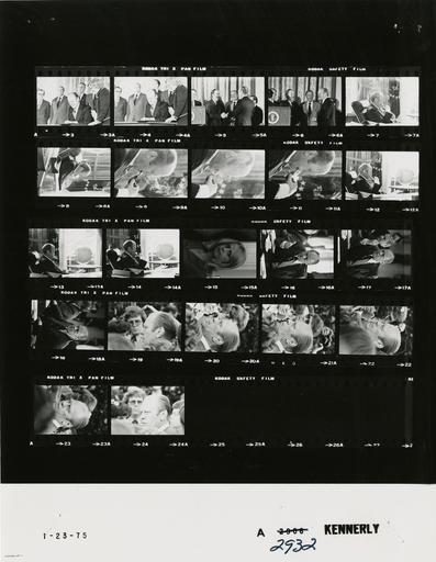 Keywords: Ford A2932 NLGRF photo contact sheet (1975-01-23)(Gerald Ford Library).jpg White House Photographic Office WHPO is housed at the Gerald R Ford Presidential Library a branch of the National Archives and Records Administration NARA <br/><br/> This file is a 200 dpi photo contact sheet having images from roll of film A2932 of the August 9 1974 - January 20 1977 Gerald R Ford White House Photographic Office Series A0001-A9999 and B0001-B2886 photographs <br/><br/> The date on the photo contact sheet is the date the roll of film was processed not necessarily the date the photographs were taken See table below for additional details 1975-01-23 Gerald R Ford Presidential Library Image http //www fordlibrarymuseum gov/library/whphotos/A2932_NLGRF jpg A2932_NLGRF jpg from http //www fordlibrarymuseum gov/library/whphotos/19750123whpo pdf White House Photographs January 23 1975 of the http //www fordlibrarymuseum gov/Library/whphotos/whpo asp White House Photographic Collection page White House Photographic Office WHPO <br/> Creator David Hume Kennerly PD-USGov Institution Institution Gerald R Ford Presidential Library Table wikitable sortable + Photo contact sheet A2932 U S President Ford Administration Gerald R Ford Library Frame s Tone Subject proper Subject generic Names Geographic Location Photographer Date - 3-4 BW Signing Ceremony for the Instruments of Ratification of the Geneva Protocol of 1925 and the Biological Weapons Convention GRF seated at table signing document; others standing behind GRF Rep Broomfield Sens Thurmond Mansfield East Room Kennerly 1975-01-23 - 5-6 BW Following Signing of the Instruments of Ratification of the Geneva Protocol of 1925 and the Biological Weapons Convention GRF and Humphrey laughing handshaking; others in background GRF Sens Humphrey Thurmond Mansfield East Room Kennerly 1975-01-23 - 7-14 BW seated at desk reading smoking pipe - extreme close up to medium range GRF Oval Office Kennerly 1975-01-23 - 15 BW frowning Receptionist Scheduling and Advance Office Kennerly 1975-01-23 - 16-18 BW Meeting to Discuss Energy and Economic Proposals with Governors from the Northeastern United States seated at table talking gesturing GRF Cabinet Room Kennerly 1975-01-23 - 19-24 BW Meeting With Press to Discuss the Import of Petroleum and Petroleum Products Legislation GRF talking; head and shoulder shots GRF Media North Grounds Kennerly 1975-01-23 Gerald R Ford Presidential Library and Museum-cooperation PD-USGov Contact sheets by the Ford White House January 1975 Photographs by David Hume Kennerly from 1975 |