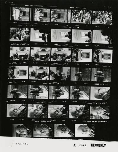 Keywords: Ford A2946 NLGRF photo contact sheet (1975-01-26)(Gerald Ford Library).jpg White House Photographic Office WHPO is housed at the Gerald R Ford Presidential Library a branch of the National Archives and Records Administration NARA <br/><br/> This file is a 200 dpi photo contact sheet having images from roll of film A2946 of the August 9 1974 - January 20 1977 Gerald R Ford White House Photographic Office Series A0001-A9999 and B0001-B2886 photographs <br/><br/> The date on the photo contact sheet is the date the roll of film was processed not necessarily the date the photographs were taken See table below for additional details 1975-01-26 Gerald R Ford Presidential Library Image http //www fordlibrarymuseum gov/library/whphotos/A2946_NLGRF jpg A2946_NLGRF jpg from http //www fordlibrarymuseum gov/library/whphotos/19750126whpo pdf White House Photographs January 26 1975 of the http //www fordlibrarymuseum gov/Library/whphotos/whpo asp White House Photographic Collection page White House Photographic Office WHPO <br/> Creator David Hume Kennerly PD-USGov Institution Institution Gerald R Ford Presidential Library Table wikitable sortable + Photo contact sheet A2946 U S President Ford Administration Gerald R Ford Library Frame s Tone Subject proper Subject generic Names Geographic Location Photographer Date - 3A-8A BW Departure From Red Mass - Archbishop of Washington DC; Secretary U S Catholic Conference walking talking moving toward limousine - taken from across street; all not in every frame GRF Betty Ford Archbishop William Baum Bishop James Rausch Others Washington DC St Matthew's Cathedral - Outside Kennerly 1975-01-26 - 9A-12A BW seated around desk - GRF's back to camera GRF Kissinger Oval Office Kennerly 1975-01-26 - 13A-19A BW Former U S Ambassador to India seated near fireplace talking; Kissinger in some frames GRF Daniel Patrick Moynihan Oval Office Kennerly 1975-01-26 - 20A BW White House Tour For Landscape Photographer standing -close up GRF Betty Ford Ansel Adams Oval Office Kennerly 1975-01-26 - 21A-26A BW Landscape Photographer standing talking walking GRF Betty Ford Ansel Adams Sidewalk Between Oval Office and South Driveway Kennerly 1975-01-26 - 27A-36A BW Landscape Photographer head and shoulder portrait s Ansel Adams Third Floor - Solarium Kennerly 1975-01-26 Gerald R Ford Presidential Library and Museum-cooperation PD-USGov Contact sheets by the Ford White House January 1975 Photographs by David Hume Kennerly from 1975 |