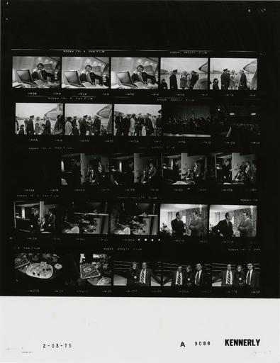 Keywords: Ford A3088 NLGRF photo contact sheet (1975-02-03)(Gerald Ford Library).jpg White House Photographic Office WHPO is housed at the Gerald R Ford Presidential Library a branch of the National Archives and Records Administration NARA <br/><br/> This file is a 200 dpi photo contact sheet having images from roll of film A3088 of the August 9 1974 - January 20 1977 Gerald R Ford White House Photographic Office Series A0001-A9999 and B0001-B2886 photographs <br/><br/> The date on the photo contact sheet is the date the roll of film was processed not necessarily the date the photographs were taken See table below for additional details 1975-02-03 Gerald R Ford Presidential Library Image http //www fordlibrarymuseum gov/library/whphotos/A3088_NLGRF jpg A3088_NLGRF jpg from http //www fordlibrarymuseum gov/library/whphotos/19750203whpo pdf White House Photographs February 3 1975 of the http //www fordlibrarymuseum gov/Library/whphotos/whpo asp White House Photographic Collection page White House Photographic Office WHPO <br/> Creator David Hume Kennerly PD-USGov Institution Institution Gerald R Ford Presidential Library Table wikitable sortable + Photo contact sheet A3088 U S President Ford Administration Gerald R Ford Library Frame s Tone Subject proper Subject generic Names Geographic Location Photographer Date - 3A-5A BW Trip to Atlanta Georgia - Flight to Atlanta Georgia on telephone Cavaney Air Force One Kennerly 1975-02-03 - 6A-10A BW Trip to Atlanta Georgia - Arrival at Dobbins Air Force Base Georgia Air Force One in background GRF Gov Busbee Miss Georgia Victor Rowland Others Dobbins Air Force Base GA Dobbins Air Force Base Kennerly 1975-02-03 - 11A-12A BW Trip to Atlanta Georgia - White House Conference on Domestic and Economic Affairs - Atlanta Georgia GRF seated in 11A; speaking at lectern in 12A; various angles; all n ot in every frame GRF Others Atlanta GA Hyatt Regency Hotel - Phoenix Room Kennerly 1975-02-03 - 13A BW Kennerly 1975-02-03 - 14A-20A BW Trip to Atlanta Georgia - Prior to Reception and Working Dinner With Southeastern State Governors and Administration Officials -Atlanta Georgia greeting handshaking talking; Wallace in wheelchair; others in background; all not in every frame GRF George Wallace; Others Atlanta GA Hyatt Regency Hotel - Essex A Room Kennerly 1975-02-03 - 21A-22A BW Trip to Atlanta Georgia - Following Reception and Working Dinner With Southeastern State Governors and Administration Officials -Atlanta Georgia standing talking GRF Unidentified Man Atlanta GA Hyatt Regency Hotel - President's Suite Kennerly 1975-02-03 - 23A-24A BW Trip to Atlanta Georgia Food Tray Atlanta GA Hyatt Regency Hotel - President's Suite Kennerly 1975-02-03 - 25A-27A BW Trip to Atlanta Georgia - American Actress and Photographer standing posing; both men not in every frame Candice Bergen Two Unidentified Men Atlanta GA Hyatt Regency Hotel Kennerly 1975-02-03 Gerald R Ford Presidential Library and Museum-cooperation PD-USGov Contact sheets by the Ford White House February 1975 Photographs by David Hume Kennerly from 1975 Dobbins Air Reserve Base |