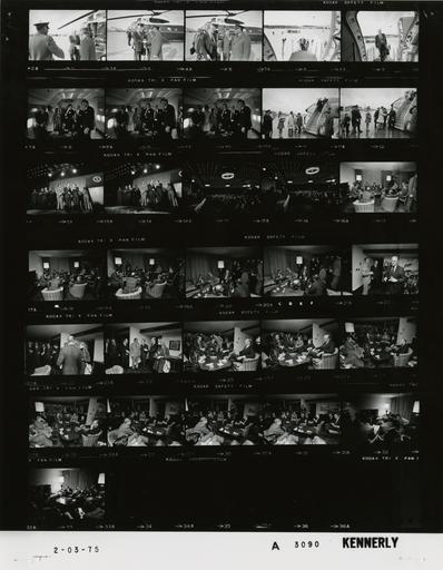 Keywords: Ford A3090 NLGRF photo contact sheet (1975-02-03)(Gerald Ford Library).jpg White House Photographic Office WHPO is housed at the Gerald R Ford Presidential Library a branch of the National Archives and Records Administration NARA <br/><br/> This file is a 200 dpi photo contact sheet having images from roll of film A3090 of the August 9 1974 - January 20 1977 Gerald R Ford White House Photographic Office Series A0001-A9999 and B0001-B2886 photographs <br/><br/> The date on the photo contact sheet is the date the roll of film was processed not necessarily the date the photographs were taken See table below for additional details 1975-02-03 Gerald R Ford Presidential Library Image http //www fordlibrarymuseum gov/library/whphotos/A3090_NLGRF jpg A3090_NLGRF jpg from http //www fordlibrarymuseum gov/library/whphotos/19750203whpo pdf White House Photographs February 3 1975 of the http //www fordlibrarymuseum gov/Library/whphotos/whpo asp White House Photographic Collection page White House Photographic Office WHPO <br/> Creator David Hume Kennerly PD-USGov Institution Institution Gerald R Ford Presidential Library Table wikitable sortable + Photo contact sheet A3090 U S President Ford Administration Gerald R Ford Library Frame s Tone Subject proper Subject generic Names Geographic Location Photographer Date - 3-5 BW Prior to Departure for Dobbins Air Force Base -Andrews Air Force Base Maryland greeting handshaking on tarmac; Marine One in background GRF Air Force Personnel Andrews Air Force Base MD Andrews Air Force Base Kennerly 1975-02-03 - 6-7 BW Prior to Departure for Dobbins Air Force Base -Andrews Air Force Base Maryland walking up steps to Air Force One; taken from inside aircraft GRF Andrews Air Force Base MD Andrews Air Force Base Kennerly 1975-02-03 - 8-10 BW Flight to Dobbins Air Force Base standing posing Sen Talmadge Others Air Force One Kennerly 1975-02-03 - 11-12 BW Arrival at Dobbins Air Force Base Georgia GRF descending steps in 10; greeting handshaking at base of steps in 11; rain GRF Others Dobbins Air Force Base GA Dobbins Air Force Base Kennerly 1975-02-03 - 13-16 BW Trip to Atlanta Georgia - White House Conference on Domestic and Economic Affairs - Atlanta Georgia standuing applauding in 1213; GRF at lectern speaking in 14-14; various angles and distances; all not in frames GRF Media Atlanta GA Hyatt Regency Hotel - Phoenix Room Kennerly 1975-02-03 - 17-31 BW Trip to Atlanta Georgia - Reception and Working Dinner With Southeastern State Governors and Administration Officials -Atlanta Georgia seated standing talking; various angles; all not in every frame; Wallace in wheelchair GRF Lynn Weinberger George Wallace Governors Others Atlanta GA Hyatt Regency Hotel - Essex A Room Kennerly 1975-02-03 - 32-33 BW Meeting With Southeastern State Governors and Administration Officials -Atlanta Georgia seated talking; all not in frame; Wallace in wheelchair GRF Lynn Weinberger George Wallace Governors Others Atlanta GA Hyatt Regency Hotel - President's Suite Kennerly 1975-02-03 Gerald R Ford Presidential Library and Museum-cooperation PD-USGov Contact sheets by the Ford White House February 1975 Photographs by David Hume Kennerly from 1975 Dobbins Air Reserve Base |