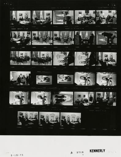Keywords: Ford A3716 NLGRF photo contact sheet (1975-03-19)(Gerald Ford Library).jpg White House Photographic Office WHPO is housed at the Gerald R Ford Presidential Library a branch of the National Archives and Records Administration NARA <br/><br/> This file is a 200 dpi photo contact sheet having images from roll of film A3716 of the August 9 1974 - January 20 1977 Gerald R Ford White House Photographic Office Series A0001-A9999 and B0001-B2886 photographs <br/><br/> The date on the photo contact sheet is the date the roll of film was processed not necessarily the date the photographs were taken See table below for additional details 1975-03-19 Gerald R Ford Presidential Library Image http //www fordlibrarymuseum gov/library/whphotos/A3716_NLGRF jpg A3716_NLGRF jpg from http //www fordlibrarymuseum gov/library/whphotos/19750319whpo pdf White House Photographs March 19 1975 of the http //www fordlibrarymuseum gov/Library/whphotos/whpo asp White House Photographic Collection page White House Photographic Office WHPO <br/> Creator David Hume Kennerly PD-USGov Institution Institution Gerald R Ford Presidential Library Table wikitable sortable + Photo contact sheet A3716 U S President Ford Administration Gerald R Ford Library Frame s Tone Subject proper Subject generic Names Geographic Location Photographer Date - 1A-7A BW around desk; various angles and distances; all not in every frame GRF Hartmann Marsh Rumsfeld Friedersdorf Nessen Oval Office Kennerly 1975-03-19 - 8A-13A BW US Senator from Louisiana around desk GRF Sen Long Oval Office Kennerly 1975-03-19 - 14A-15A BW President International Brotherhood of Teamsters near fireplace GRF Dunlop Frank Fitzsimmons Oval Office Kennerly 1975-03-19 - 16A BW standing Marsh holding newspaper; Buchen and Rumsfeld in background Scowcroft Marsh Scheduling and Advance Office Kennerly 1975-03-19 - 17A-18A BW on loveseat looking in briefcase; taken through doorway Colby Scheduling and Advance Office Kennerly 1975-03-19 - 19A-22A BW standing talking Colby Rumsfeld Cabinet Room Kennerly 1975-03-19 - 23A BW standing talking Marsh Colby Scheduling and Advance Office Kennerly 1975-03-19 - 24A BW Rumsfeld Schlesinger Colby Buchen Scheduling and Advance Office Kennerly 1975-03-19 - 25A-28A BW around desk; various angles; Scowcroft in first frame GRF Colby Schlesinger Oval Office Kennerly 1975-03-19 Gerald R Ford Presidential Library and Museum-cooperation PD-USGov Contact sheets by the Ford White House March 1975 Photographs by David Hume Kennerly from 1975 |