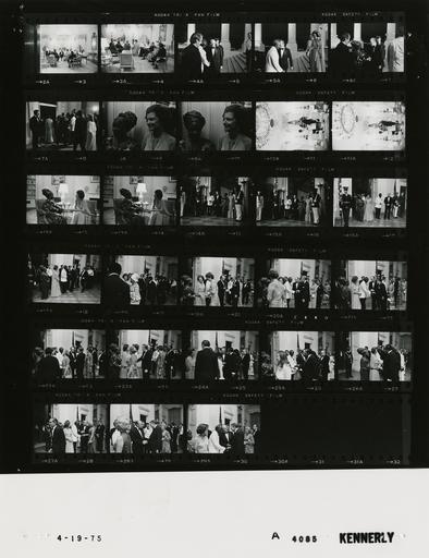 | Keywords: Ford A4085 NLGRF photo contact sheet (1975-04-19)(Gerald Ford Library).jpg White House Photographic Office WHPO is housed at the Gerald R Ford Presidential Library a branch of the National Archives and Records Administration NARA <br/><br/> This file is a 200 dpi photo contact sheet having images from roll of film A4085 of the August 9 1974 - January 20 1977 Gerald R Ford White House Photographic Office Series A0001-A9999 and B0001-B2886 photographs <br/><br/> The date on the photo contact sheet is the date the roll of film was processed not necessarily the date the photographs were taken See table below for additional details 1975-04-19 Gerald R Ford Presidential Library Image http //www fordlibrarymuseum gov/library/whphotos/A4085_NLGRF jpg A4085_NLGRF jpg from http //www fordlibrarymuseum gov/library/whphotos/19750419whpo pdf White House Photographs April 19 1975 of the http //www fordlibrarymuseum gov/Library/whphotos/whpo asp White House Photographic Collection page White House Photographic Office WHPO <br/> Creator David Hume Kennerly PD-USGov Institution Institution Gerald R Ford Presidential Library Table wikitable sortable + Photo contact sheet A4085 U S President Ford Administration Gerald R Ford Library Frame s Tone Subject proper Subject generic Names Geographic Location Photographer Date - 3-4 BW Prior to State Dinner For President Mrs Kenneth Kaunda of Zambia seated in circle talking; formal wear Kissinger Others Second Floor - Yellow Oval Room Kennerly 1975-04-19 - 5-8 BW Prior to State Dinner For President of Zambia greeting near limousine walking into White House; formal wear; all not in every frame GRF Betty Ford Kenneth Kaunda Betty Kaunda North Portico Kennerly 1975-04-19 - 9-10 BW Prior to State Dinner For President of Zambia talking going to second floor for reception Betty Ford Betty Kaunda Elevator Kennerly 1975-04-19 - 11-12 BW Reception Prior to State Dinner For President of Zambia standing talking; long shots; formal wear GRF Kenneth Kaunda Second Floor - Yellow Oval Room Kennerly 1975-04-19 - 13-14 BW Reception Prior to State Dinner For President of Zambia seated talking; formal wear Betty Ford Betty Kaunda Second Floor - Yellow Oval Room Kennerly 1975-04-19 - 15-16 BW Prior to State Dinner For President of Zambia standing posing at base of steps GRF Betty Ford Kenneth Kaunda Betty Kaunda Honor Guard Entrance Hall Kennerly 1975-04-19 - 17-30 BW Receiving Line Prior to State Dinner For President of Zambia greeting handshaking; all not in every frame; Howard Cosell in last three frames; formal wear GRF Betty Ford Kenneth Kaunda Betty Kaunda Guests East Room Kennerly 1975-04-19 Gerald R Ford Presidential Library and Museum-cooperation PD-USGov Contact sheets by the Ford White House April 1975 Photographs by David Hume Kennerly from 1975 Howard Cosell |