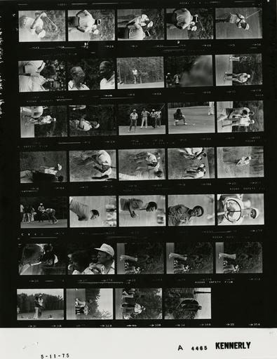 | Keywords: Ford A4465 NLGRF photo contact sheet (1975-05-10)(Gerald Ford Library).jpg White House Photographic Office WHPO is housed at the Gerald R Ford Presidential Library a branch of the National Archives and Records Administration NARA <br/><br/> This file is a 200 dpi photo contact sheet having images from roll of film A4465 of the August 9 1974 - January 20 1977 Gerald R Ford White House Photographic Office Series A0001-A9999 and B0001-B2886 photographs <br/><br/> The date on the photo contact sheet is the date the roll of film was processed not necessarily the date the photographs were taken See table below for additional details 1975-05-10 Gerald R Ford Presidential Library Image http //www fordlibrarymuseum gov/library/whphotos/A4465_NLGRF jpg A4465_NLGRF jpg from http //www fordlibrarymuseum gov/library/whphotos/19750510whpo pdf White House Photographs May 10 1975 of the http //www fordlibrarymuseum gov/Library/whphotos/whpo asp White House Photographic Collection page White House Photographic Office WHPO <br/> Creator David Hume Kennerly PD-USGov Institution Institution Gerald R Ford Presidential Library Table wikitable sortable + Photo contact sheet A4465 U S President Ford Administration Gerald R Ford Library Frame s Tone Subject proper Subject generic Names Geographic Location Photographer Date - 1-5 BW Third Annual Lee Elder Celebrity Pro-Am Golf Tournament - Orange County Virginia GRF practicing swing GRF Others Orange County VA Lake of the Woods Country Club Kennerly 1975-05-10 - 6-7 BW Third Annual Lee Elder Celebrity Pro-Am Golf Tournament - Former Boxer - Orange County Virginia standing talking; close ups GRF Joe Louis Orange County VA Lake of the Woods Country Club Kennerly 1975-05-10 - 8-15 BW Third Annual Lee Elder Celebrity Pro-Am Golf Tournament - Orange County Virginia various golf activities; all not in every frame GRF Others Orange County VA Lake of the Woods Country Club Kennerly 1975-05-10 - 16-20 BW Third Annual Lee Elder Celebrity Pro-Am Golf Tournament - Orange County Virginia looking for lost ball in grass GRF Others Orange County VA Lake of the Woods Country Club Kennerly 1975-05-10 - 21-33 BW Third Annual Lee Elder Celebrity Pro-Am Golf Tournament - Orange County Virginia various golf activities; all not in every frame GRF Flip Wilson Lee Elder Others Orange County VA Lake of the Woods Country Club Kennerly 1975-05-10 - 34 BW Weekend Trip To Camp David - Thurmont Maryland walking from swimming pool; housecoat GRF Thurmont MD Camp David -Aspen Lodge - Patio Kennerly 1975-05-10 Gerald R Ford Presidential Library and Museum-cooperation PD-USGov Contact sheets by the Ford White House May 1975 Photographs by David Hume Kennerly from 1975 |