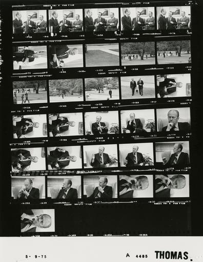 | Keywords: Ford A4485 NLGRF photo contact sheet (1975-05-09)(Gerald Ford Library).jpg White House Photographic Office WHPO is housed at the Gerald R Ford Presidential Library a branch of the National Archives and Records Administration NARA <br/><br/> This file is a 200 dpi photo contact sheet having images from roll of film A4485 of the August 9 1974 - January 20 1977 Gerald R Ford White House Photographic Office Series A0001-A9999 and B0001-B2886 photographs <br/><br/> The date on the photo contact sheet is the date the roll of film was processed not necessarily the date the photographs were taken See table below for additional details 1975-05-09 Gerald R Ford Presidential Library Image http //www fordlibrarymuseum gov/library/whphotos/A4485_NLGRF jpg A4485_NLGRF jpg from http //www fordlibrarymuseum gov/library/whphotos/19750509whpo pdf White House Photographs May 9 1975 of the http //www fordlibrarymuseum gov/Library/whphotos/whpo asp White House Photographic Collection page White House Photographic Office WHPO - Thomas PD-USGov Institution Institution Gerald R Ford Presidential Library Table wikitable sortable + Photo contact sheet A4485 U S President Ford Administration Gerald R Ford Library Frame s Tone Subject proper Subject generic Names Geographic Location Photographer Date - 3A-7A BW Presentation of PORTRAIT OF A PRESIDENT Book by Fred Ward standing posing GRF Fred Ward Unidentified Man Oval Office Thomas 1975-05-09 - 8A-9A BW Presentation of PORTRAIT OF A PRESIDENT Book by Fred Ward standing holding book GRF Oval Office Thomas 1975-05-09 - 10A BW Thomas 1975-05-09 - 11A-15A BW Niece of Bob Quinn playing on lawn; extremely long shots see A4453 and others GRF Betty Ford Thuy Bob Quinn Kennerly Others South Lawn Thomas 1975-05-09 - 16A BW walking talking; returning to White House GRF Secret Service South Lawn Thomas 1975-05-09 - 17A-33A BW seated near fireplace; portrait s ; various distances; lighting and smoking pipe in last six frames GRF Oval Office Thomas 1975-05-09 Gerald R Ford Presidential Library and Museum-cooperation PD-USGov Contact sheets by the Ford White House May 1975 |