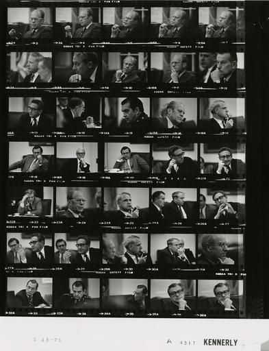 Keywords: Ford A4517 NLGRF photo contact sheet (1975-05-13)(Gerald Ford Library).jpg White House Photographic Office WHPO is housed at the Gerald R Ford Presidential Library a branch of the National Archives and Records Administration NARA <br/><br/> This file is a 200 dpi photo contact sheet having images from roll of film A4517 of the August 9 1974 - January 20 1977 Gerald R Ford White House Photographic Office Series A0001-A9999 and B0001-B2886 photographs <br/><br/> The date on the photo contact sheet is the date the roll of film was processed not necessarily the date the photographs were taken See table below for additional details 1975-05-13 Gerald R Ford Presidential Library Image http //www fordlibrarymuseum gov/library/whphotos/A4517_NLGRF jpg A4517_NLGRF jpg from http //www fordlibrarymuseum gov/library/whphotos/19750513whpo pdf White House Photographs May 13 1975 of the http //www fordlibrarymuseum gov/Library/whphotos/whpo asp White House Photographic Collection page White House Photographic Office WHPO <br/> Creator David Hume Kennerly PD-USGov Institution Institution Gerald R Ford Presidential Library Table wikitable sortable + Photo contact sheet A4517 U S President Ford Administration Gerald R Ford Library Frame s Tone Subject proper Subject generic Names Geographic Location Photographer Date - 3-7 BW 10 40 pm National Security Council Meeting Regarding Seizure of the SS Mayaguez speaking gesturing; holding glasses to mouth in last four frames GRF Cabinet Room Kennerly 1975-05-13 - 8 BW 10 40 pm National Security Council Meeting Regarding Seizure of the SS Mayaguez silhouette; Clements in foreground out of focus Schlesinger Cabinet Room Kennerly 1975-05-13 - 9 BW 10 40 pm National Security Council Meeting Regarding Seizure of the SS Mayaguez left profile; chin on hand; close up Marsh Cabinet Room Kennerly 1975-05-13 - 10-11 BW 10 40 pm National Security Council Meeting Regarding Seizure of the SS Mayaguez holding glasses to mouth in first frame; close ups GRF Cabinet Room Kennerly 1975-05-13 - 12 BW 10 40 pm National Security Council Meeting Regarding Seizure of the SS Mayaguez chin on hand; close up Clements Cabinet Room Kennerly 1975-05-13 - 13 BW 10 40 pm National Security Council Meeting Regarding Seizure of the SS Mayaguez close up Kissinger Cabinet Room Kennerly 1975-05-13 - 14 BW 10 40 pm National Security Council Meeting Regarding Seizure of the SS Mayaguez right profile close up Clements Cabinet Room Kennerly 1975-05-13 - 15 BW 10 40 pm National Security Council Meeting Regarding Seizure of the SS Mayaguez left profile close up Jones Cabinet Room Kennerly 1975-05-13 - 16 BW 10 40 pm National Security Council Meeting Regarding Seizure of the SS Mayaguez close up GRF Cabinet Room Kennerly 1975-05-13 - 17 BW 10 40 pm National Security Council Meeting Regarding Seizure of the SS Mayaguez close up; smoking pipe; eyes closed Schlesinger Cabinet Room Kennerly 1975-05-13 - 18 BW 10 40 pm National Security Council Meeting Regarding Seizure of the SS Mayaguez chin on hand; close up Rumsfeld Cabinet Room Kennerly 1975-05-13 - 19 BW 10 40 pm National Security Council Meeting Regarding Seizure of the SS Mayaguez chin on hand; close up Buchen Cabinet Room Kennerly 1975-05-13 - 20 BW 10 40 pm National Security Council Meeting Regarding Seizure of the SS Mayaguez chin on hand; close up Rumsfeld Cabinet Room Kennerly 1975-05-13 - 21-22 BW 10 40 pm National Security Council Meeting Regarding Seizure of the SS Mayaguez close up; chewing on pen in second frame Kissinger Cabinet Room Kennerly 1975-05-13 - 23 BW 10 40 pm National Security Council Meeting Regarding Seizure of the SS Mayaguez close up; hand on forehead; smoking pipe Hartmann Cabinet Room Kennerly 1975-05-13 - 24 BW 10 40 pm National Security Council Meeting Regarding Seizure of the SS Mayaguez close up; bad expression GRF Cabinet Room Kennerly 1975-05-13 - 25 BW 10 40 pm National Security Council Meeting Regarding Seizure of the SS Mayaguez close up; smoking pipe Schlesinger Cabinet Room Kennerly 1975-05-13 - 26 BW 10 40 pm National Security Council Meeting Regarding Seizure of the SS Mayaguez close up; bad expressions Marsh Clements Cabinet Room Kennerly 1975-05-13 - 27-29 BW 10 40 pm National Security Council Meeting Regarding Seizure of the SS Mayaguez speaking gesturing; close ups Kissinger Cabinet Room Kennerly 1975-05-13 - 30-31 BW 10 40 pm National Security Council Meeting Regarding Seizure of the SS Mayaguez smoking pipes; right profiles; GRF slightly out of focus GRF Schlesinger Cabinet Room Kennerly 1975-05-13 - 32 BW 10 40 pm National Security Council Meeting Regarding Seizure of the SS Mayaguez seated both hands at mouth Marsh Cabinet Room Kennerly 1975-05-13 - 33 BW 10 40 pm National Security Council Meeting Regarding Seizure of the SS Mayaguez right profile close up; chin in hand Ingersoll Cabinet Room Kennerly 1975-05-13 - 34 BW 10 40 pm National Security Council Meeting Regarding Seizure of the SS Mayaguez seated listening; close up Colby Cabinet Room Kennerly 1975-05-13 - 35 BW 10 40 pm National Security Council Meeting Regarding Seizure of the SS Mayaguez seated dour expression; close up Jones Cabinet Room Kennerly 1975-05-13 - 36 BW 10 40 pm National Security Council Meeting Regarding Seizure of the SS Mayaguez close up looking to side Colby Cabinet Room Kennerly 1975-05-13 - 37-38 BW 10 40 pm National Security Council Meeting Regarding Seizure of the SS Mayaguez close up; chin in hand Rockefeller Cabinet Room Kennerly 1975-05-13 Gerald R Ford Presidential Library and Museum-cooperation PD-USGov Contact sheets by the Ford White House May 1975 Photographs by David Hume Kennerly from 1975 |