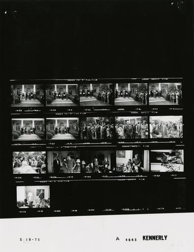 | Keywords: Ford A4643 NLGRF photo contact sheet (1975-05-19)(Gerald Ford Library).jpg White House Photographic Office WHPO is housed at the Gerald R Ford Presidential Library a branch of the National Archives and Records Administration NARA <br/><br/> This file is a 200 dpi photo contact sheet having images from roll of film A4643 of the August 9 1974 - January 20 1977 Gerald R Ford White House Photographic Office Series A0001-A9999 and B0001-B2886 photographs <br/><br/> The date on the photo contact sheet is the date the roll of film was processed not necessarily the date the photographs were taken See table below for additional details 1975-05-19 Gerald R Ford Presidential Library Image http //www fordlibrarymuseum gov/library/whphotos/A4643_NLGRF jpg A4643_NLGRF jpg from http //www fordlibrarymuseum gov/library/whphotos/19750519whpo pdf White House Photographs May 19 1975 of the http //www fordlibrarymuseum gov/Library/whphotos/whpo asp White House Photographic Collection page White House Photographic Office WHPO <br/> Creator David Hume Kennerly PD-USGov Institution Institution Gerald R Ford Presidential Library Table wikitable sortable + Photo contact sheet A4643 U S President Ford Administration Gerald R Ford Library Frame s Tone Subject proper Subject generic Names Geographic Location Photographer Date - 3-9 BW Reception for Current and Newly Selected White House Fellows standing posing on steps from Colonnade; first frame double-exposed GRF White House Fellows Rose Garden Kennerly 1975-05-19 - 10-13 BW Reception for Current and Newly Selected White House Fellows greeting handshaking standing talking mingling; all not in every frame GRF White House Fellows Rose Garden Kennerly 1975-05-19 - 14 BW Steve Ford Birthday Party; White House Staff standing talking Steve Ford Gene Allen Second Floor - Center Hall Kennerly 1975-05-19 - 15 BW Steve Ford Birthday Party walking; GRF obscured GRF Candice Bergen Unidentified Man Second Floor - Center Hall Kennerly 1975-05-19 - 16-17 BW Steve Ford Birthday Party seated on chair; Steve seated on arm opening gift Steve Ford Dee Dee Jarvis Second Floor - West Sitting Room Kennerly 1975-05-19 - 18 BW Steve Ford Birthday Party Bergen seated Steve walking Steve Ford Candice Bergen Second Floor - West Sitting Room Kennerly 1975-05-19 Gerald R Ford Presidential Library and Museum-cooperation PD-USGov Contact sheets by the Ford White House May 1975 Photographs by David Hume Kennerly from 1975 |