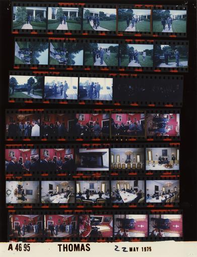 | Keywords: Ford A4695 NLGRF photo contact sheet (1975-05-22)(Gerald Ford Library).jpg White House Photographic Office WHPO is housed at the Gerald R Ford Presidential Library a branch of the National Archives and Records Administration NARA <br/><br/> This file is a 200 dpi photo contact sheet having images from roll of film A4695 of the August 9 1974 - January 20 1977 Gerald R Ford White House Photographic Office Series A0001-A9999 and B0001-B2886 photographs <br/><br/> The date on the photo contact sheet is the date the roll of film was processed not necessarily the date the photographs were taken See table below for additional details 1975-05-22 Gerald R Ford Presidential Library Image http //www fordlibrarymuseum gov/library/whphotos/A4695_NLGRF jpg A4695_NLGRF jpg from http //www fordlibrarymuseum gov/library/whphotos/19750522whpo pdf White House Photographs May 22 1975 of the http //www fordlibrarymuseum gov/Library/whphotos/whpo asp White House Photographic Collection page White House Photographic Office WHPO - Thomas PD-USGov Institution Institution Gerald R Ford Presidential Library Table wikitable sortable + Photo contact sheet A4695 U S President Ford Administration Gerald R Ford Library Frame s Tone Subject proper Subject generic Names Geographic Location Photographer Date - 3A-15A Color Following Meeting with the President of the Republic of Senegal walking talking; moving toward driveway; all may not be in every frame GRF Leopold Senghor Assane Seck Andre Coulbary O Rudoplh Aggrey Alec Toumayan Others Sidewalk Between Oval Office and South Driveway Thomas 1975-05-22 - 16A-17A Color Thomas 1975-05-22 - 18A--24A Color Reception for the President of the Republic of Senegal standing talking; all not in every frame GRF Leopold Senghor Guests Red Room Thomas 1975-05-22 - 25A-32A Color Luncheon for the President of the Republic of Senegal walking into room seated around table; all not in frames GRF Leopold Senghor Guests State Dining Room Thomas 1975-05-22 - 33A-37A Color Coffee Following Luncheon for the President of the Republic of Senegal standing talking; all not in every frame GRF Leopold Senghor Guests Red Room Thomas 1975-05-22 Gerald R Ford Presidential Library and Museum-cooperation PD-USGov Contact sheets by the Ford White House May 1975 |