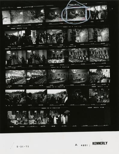 | Keywords: Ford A4801 NLGRF photo contact sheet (1975-05-31)(Gerald Ford Library).jpg White House Photographic Office WHPO is housed at the Gerald R Ford Presidential Library a branch of the National Archives and Records Administration NARA <br/><br/> This file is a 200 dpi photo contact sheet having images from roll of film A4801 of the August 9 1974 - January 20 1977 Gerald R Ford White House Photographic Office Series A0001-A9999 and B0001-B2886 photographs <br/><br/> The date on the photo contact sheet is the date the roll of film was processed not necessarily the date the photographs were taken See table below for additional details 1975-05-31 Gerald R Ford Presidential Library Image http //www fordlibrarymuseum gov/library/whphotos/A4801_NLGRF jpg A4801_NLGRF jpg from http //www fordlibrarymuseum gov/library/whphotos/19750531whpo pdf White House Photographs May 31 1975 of the http //www fordlibrarymuseum gov/Library/whphotos/whpo asp White House Photographic Collection page White House Photographic Office WHPO <br/> Creator David Hume Kennerly PD-USGov Institution Institution Gerald R Ford Presidential Library Table wikitable sortable + Photo contact sheet A4801 U S President Ford Administration Gerald R Ford Library Frame s Tone Subject proper Subject generic Names Geographic Location Photographer Date - 1-4 BW Trip to Spain - Arrival in Madrid seated talking in separate groups; first two frame overexposed GRF Generalissimo Francisco Franco; Betty Ford Carmen Franco; Interpretors Madrid Spain Barajas Airport - VIP Lounge Kennerly 1975-05-31 - 5-6 BW Trip to Spain - Arrival in Madrid walking to limousine GRF Generalissimo Francisco Franco Madrid Spain Barajas Airport - Outside VIP Lounge Kennerly 1975-05-31 - 7-10 BW Trip to Spain - Arrival for Meeting with Generalissimo Franco greeting handshaking standing talking; various distances GRF Betty Ford Members of the Military Household Civilian Household Madrid Spain El Pardo Palace Kennerly 1975-05-31 - 11-12 BW Trip to Spain - Arrival for Meeting with Generalissimo Franco descending steps; guard flanking GRF Betty Ford Chief of the Military Household Chief of the Civilian Household; Honor Guard Madrid Spain El Pardo Palace - Ambassador's Stairs Kennerly 1975-05-31 - 18-19 BW Trip to Spain - Free Time in Guest Residence seated reading; smoking pipe GRF Madrid Spain Moncloa Palace - President's Suite Kennerly 1975-05-31 - 20-23 BW Trip to Spain - Departing for State Dinner at the Royal Palace GRF waving; in formal wear GRF Crowd Madrid Spain Moncloa Palace - Terrace Kennerly 1975-05-31 - 24-27 BW Trip to Spain - Arrival for State Dinner at the Royal Palace walking up steps; formal wear GRF Betty Ford Chief of the Military Household Chief of the Civilian Household Madrid Spain Royal Palace - Stairs Kennerly 1975-05-31 - 28 BW Trip to Spain - Arrival for State Dinner at the Royal Palace greeting handshaking; formal wear GRF Generalissimo Francisco Franco; Betty Ford Carmen Franco; Princess Sofia Madrid Spain Royal Palace - Salon de Teniers Kennerly 1975-05-31 - 3A-7A BW Trip to Spain - Working Luncheon with Spanish Prime Minister and Foreign Minister seated around large rectangular table; various angles and distances; all not in every frame GRF Carlos Arias Navaero; Kissinger Amb Stabler Rumsfeld Hartmann Nessen Sonnenfeldt Scowcroft Col Dixon Samuel Eaton; Rafael Cabello de Alba; Pedro Mauri Francisco Gallegos gabriel da Viega Mariano Median Antonio Martinez Others Madrid Spain Moncloa Palace - Salon de Columnas Kennerly 1975-05-31 - 13-17 BW Trip to Spain - Working Luncheon for U S Spanish Officials hosted by President Ford standing seated at long table talking GRF P M Carlos Arias Navaero; Hartmann Rumsfeld Kissinger Nessen others; interpreter press Madrid Spain Moncloa Palace - Salon de Cafe Kennerly 1975-05-31 Gerald R Ford Presidential Library and Museum-cooperation PD-USGov Contact sheets by the Ford White House May 1975 Photographs by David Hume Kennerly from 1975 |