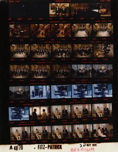 Keywords: Ford A4870 NLGRF photo contact sheet (1975-05-29)(Gerald Ford Library).jpg White House Photographic Office WHPO is housed at the Gerald R Ford Presidential Library a branch of the National Archives and Records Administration NARA <br/><br/> This file is a 200 dpi photo contact sheet having images from roll of film A4870 of the August 9 1974 - January 20 1977 Gerald R Ford White House Photographic Office Series A0001-A9999 and B0001-B2886 photographs <br/><br/> The date on the photo contact sheet is the date the roll of film was processed not necessarily the date the photographs were taken See table below for additional details 1975-05-29 Gerald R Ford Presidential Library Image http //www fordlibrarymuseum gov/library/whphotos/A4870_NLGRF jpg A4870_NLGRF jpg from http //www fordlibrarymuseum gov/library/whphotos/19750529whpo pdf White House Photographs May 29 1975 of the http //www fordlibrarymuseum gov/Library/whphotos/whpo asp White House Photographic Collection page White House Photographic Office WHPO - Fitz-Patrick PD-USGov Institution Institution Gerald R Ford Presidential Library Table wikitable sortable + Photo contact sheet A4870 U S President Ford Administration Gerald R Ford Library Frame s Tone Subject proper Subject generic Names Geographic Location Photographer Date - 4A Color Trip to Belgium -Photo Opportunity Prior to Dinner for Heads of State Attending the NATO Sessions standing posing formal wear King Baudouin Prince Albert of Liege Brussels Belgium Salon Goya - Belgian Royal Palace Fitz-Patrick 1975-05-29 - 5A Color Trip to Belgium -Dinner for Heads of State Attending the NATO Sessions standing for toast GRF King Baudouin Prince Albert of Liege Heads of State Attending the NATO Sessions Brussels Belgium Belgian Royal Palace - Dining Hall Fitz-Patrick 1975-05-29 - 6A Color Trip to Belgium -Dinner for Heads of State Attending the NATO Sessions standing speaking; close up formal wear King Baudouin Brussels Belgium Belgian Royal Palace - Dining Hall Fitz-Patrick 1975-05-29 - 7A Color Trip to Belgium -Dinner for Heads of State Attending the NATO Sessions speaking; Kissinger seated in foreground formal wear Joseph Luns Brussels Belgium Belgian Royal Palace - Dining Hall Fitz-Patrick 1975-05-29 - 8A-9A Color Trip to Belgium -Dinner for Heads of State Attending the NATO Sessions seated sitting at long table; formal war GRF King Baudouin Prince Albert of Liege President Giscard d'Estaing; Heads of State Attending the NATO Sessions Brussels Belgium Belgian Royal Palace - Dining Hall Fitz-Patrick 1975-05-29 - 10A-13A Color Trip to Belgium -Dinner for Heads of State Attending the NATO Sessions walking down steps; GRF and others in foreground; HOS behind; formal wear GRF King Baudouin Prince Albert of Liege President Giscard d'Estaing; Heads of State Attending the NATO Sessions Brussels Belgium Staircase - Belgian Royal Palace Fitz-Patrick 1975-05-29 - 14A-19A Color Trip to Belgium -Dinner for Heads of State Attending the NATO Sessions all standing at base of steps; formal wear GRF King Baudouin Prince Albert of Liege President Giscard d'Estaing; Heads of State Attending the NATO Sessions Brussels Belgium Staircase - Belgian Royal Palace Fitz-Patrick 1975-05-29 - 20A-22A Color Trip to Belgium -Breakfast Meeting with Prime Minister of Great Britain seated talking around round table GRF Harold Wilson Harold Wilson James Callaghan John Hunt Kissinger Scowcroft Sonnenfeldt Brussels Belgium American Embassy Residence - Ground Floor Dining Room Fitz-Patrick 1975-05-30 - 23A-27A Color Trip to Belgium -Following Breakfast Meeting with Prime Minister of Great Britain walking talking GRF Harold Wilson James Callaghan John Hunt Kissinger Brussels Belgium American Embassy Residence - Outside Fitz-Patrick 1975-05-30 - 28A Color Trip to Belgium -Meeting with Prime Minister of Canada standing talking GRF Pierre Trudeau Brussels Belgium North Atlantic Treaty Organization NATO Headquarters - Secretary General's Conference Room Fitz-Patrick 1975-05-30 - 29A-36A Color Trip to Belgium -Meeting with Prime Minister of Canada seated talking GRF Pierre Trudeau Brussels Belgium North Atlantic Treaty Organization NATO Headquarters - Secretary General's Conference Room Fitz-Patrick 1975-05-30 Gerald R Ford Presidential Library and Museum-cooperation PD-USGov Contact sheets by the Ford White House May 1975 |