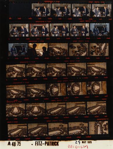 | Keywords: Ford A4875 NLGRF photo contact sheet (1975-05-29)(Gerald Ford Library).jpg White House Photographic Office WHPO is housed at the Gerald R Ford Presidential Library a branch of the National Archives and Records Administration NARA <br/><br/> This file is a 200 dpi photo contact sheet having images from roll of film A4875 of the August 9 1974 - January 20 1977 Gerald R Ford White House Photographic Office Series A0001-A9999 and B0001-B2886 photographs <br/><br/> The date on the photo contact sheet is the date the roll of film was processed not necessarily the date the photographs were taken See table below for additional details 1975-05-29 Gerald R Ford Presidential Library Image http //www fordlibrarymuseum gov/library/whphotos/A4875_NLGRF jpg A4875_NLGRF jpg from http //www fordlibrarymuseum gov/library/whphotos/19750529whpo pdf White House Photographs May 29 1975 of the http //www fordlibrarymuseum gov/Library/whphotos/whpo asp White House Photographic Collection page White House Photographic Office WHPO - Fitz-Patrick PD-USGov Institution Institution Gerald R Ford Presidential Library Table wikitable sortable + Photo contact sheet A4875 U S President Ford Administration Gerald R Ford Library Frame s Tone Subject proper Subject generic Names Geographic Location Photographer Date - 3 Color Fitz-Patrick 1975-05-29 - 4-13 Color Trip to Belgium -Meeting with Prime Minister of Portugal seated near fireplace GRF Vasco dos Santos Goncalves Brussels Belgium American Embassy Residence - Meeting Room Fitz-Patrick 1975-05-29 - 14 Color Trip to Belgium -Opening Ceremony of the NATO Ministerial Session looking through window at Ceremonial Room 16 Television Crew Brussels Belgium North Atlantic Treay Organization NATO Headquarters - Television Booth Fitz-Patrick 1975-05-29 - 15-37 Color Trip to Belgium -NATO Ordinary Session seated around circular table; various angles and distances NATO Representatives Brussels Belgium North Atlantic Treaty Organization NATO Headquarters - Conference Room I Fitz-Patrick 1975-05-29 Gerald R Ford Presidential Library and Museum-cooperation PD-USGov Contact sheets by the Ford White House May 1975 |